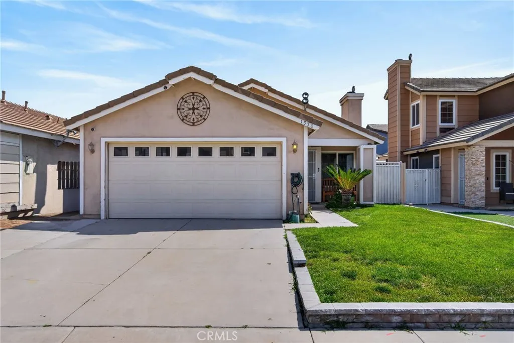 This well-maintained home offers a smooth stucco exterior and landscaped front yard with great curb appeal.