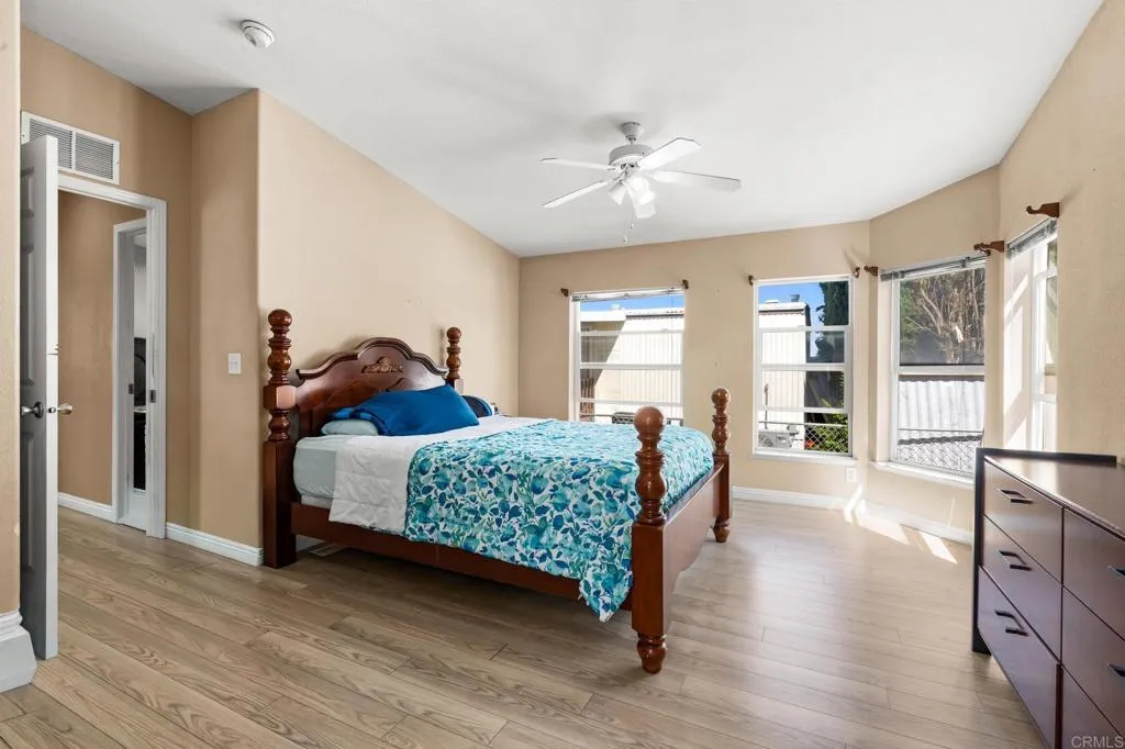 With rent-controlled space rent of only $529 per month, this bright and spacious manufactured home is located in a quiet, gated, all-age (family) community, just minutes from the beach. Skylights and vaulted ceilings fill the home with natural light, creating a warm and welcoming atmosphere. The open floor plan is ideal for everyday living and entertaining. A cozy fireplace adds comfort on cooler evenings, while ceiling fans throughout help keep the home comfortable year-round. Privacy hedges outside provide a peaceful place to relax and unwind. Conveniently located across from the clubhouse and pool, the home also offers a private carport with parking for up to three vehicles and easy access to shopping, freeways, and the coast. Schedule a visit and come experience affordable coastal living for yourself. Con renta del espacio bajo rent control de solo $529 al mes, esta casa prefabricada amplia y llena de luz natural se encuentra en una comunidad cerrada y familiar (todas las edades), a solo minutos de la playa. Los tragaluces y los techos altos crean un ambiente clido y acogedor. El diseo de espacio abierto es perfecto para la vida diaria y para recibir visitas. La chimenea brinda comodidad en las noches frescas y los ventiladores de techo ayudan a mantener la casa fresca todo el ao. En el exterior, los setos ofrecen privacidad y tranquilidad. Ubicada justo frente a la casa club y la alberca, la propiedad tambin cuenta con cochera privada para hasta tres vehculos y fcil acceso a tiendas, autopistas y la costa. Agenda tu visita y descubre una forma ms accesible de vivir cer