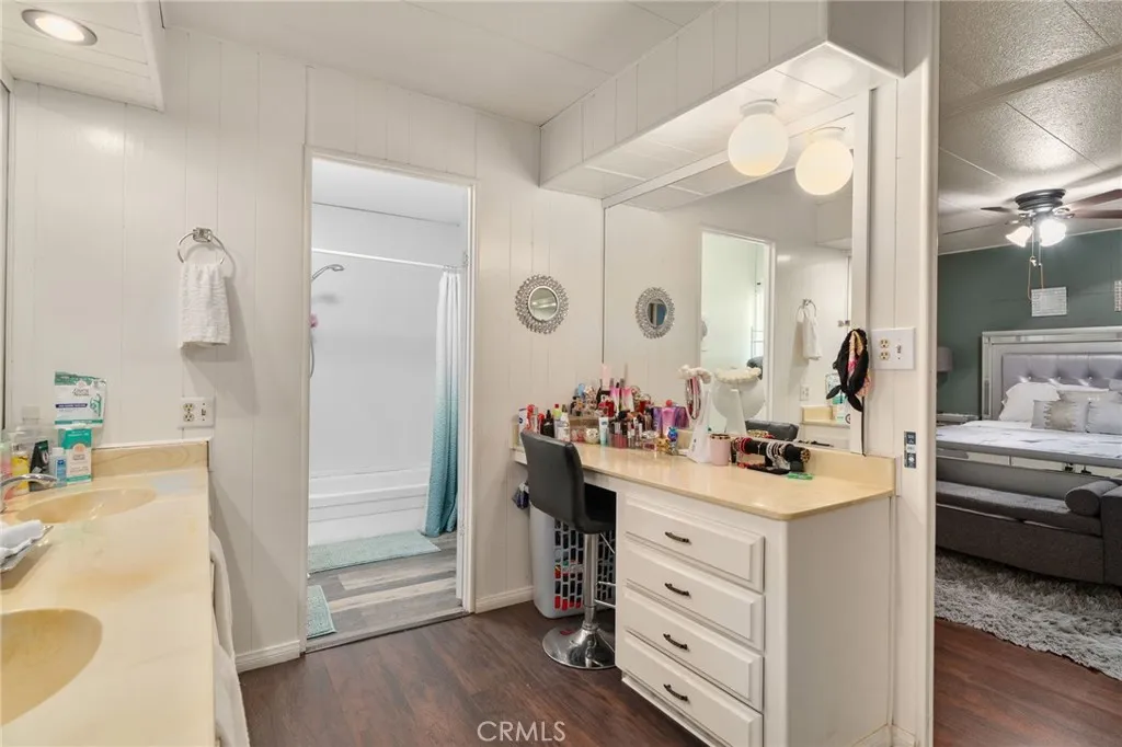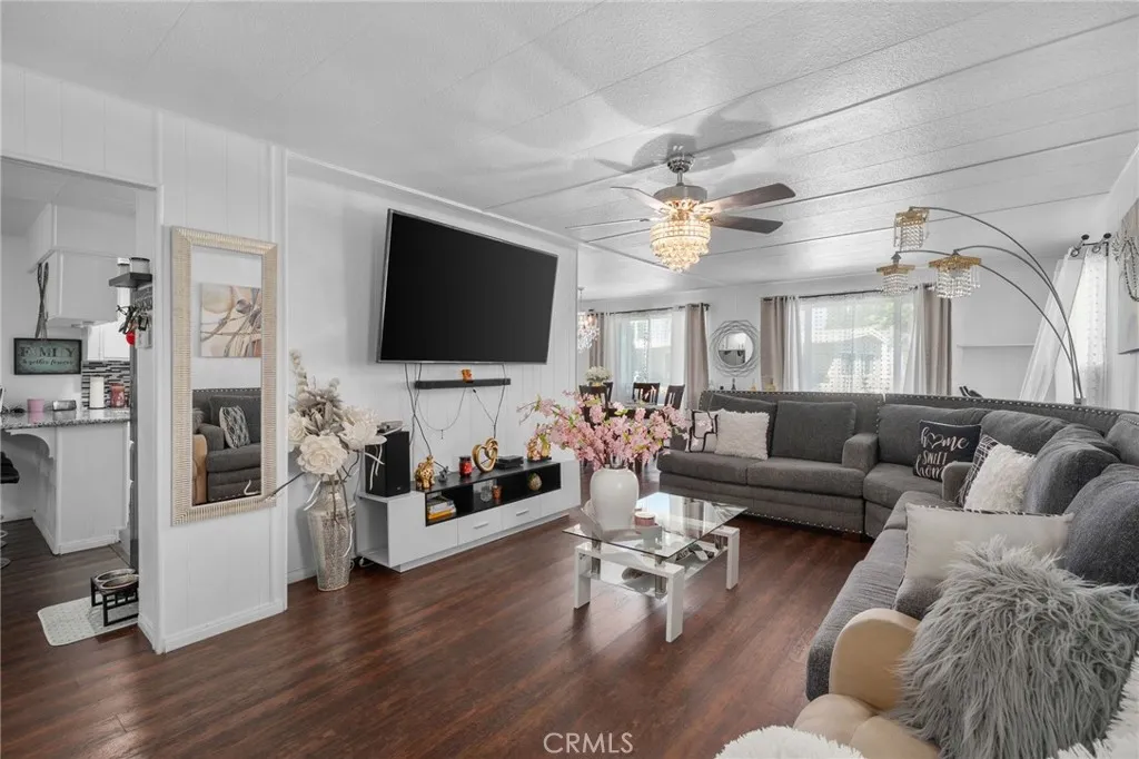 Welcome to the gated Swan Lake community, offering resort-style living with an attendant at the gate, clubhouse, swimming pool and spa, sports court, and a serene fishing lake. This spacious home sits on a desirable lot and features a carport with a fenced side patio and side yardgreat for outdoor relaxing or gardening. Fruit trees and a storage shed add to the charm and functionality of the outdoor space. Inside, the main living area features laminate flooring and a wonderfully open layout. The large family room flows into the dining room, which includes built-in cabinetry for added storage and display. The kitchen is bright and inviting, equipped with granite countertops, tile backsplash, and a cozy breakfast nook with washer/dryer hookups nearby for convenience. The primary bedroom is generously sized and includes a closet and additional built-in cabinetry. The primary bathroom offers dual sinks and a vanity area. There is also a second bedroom and full bathroom inside the main home. A standout feature of this property is the ADU (Accessory Dwelling Unit), providing a versatile living space complete with a bedroom, bathroom, and kitchenetteideal for guests, extended family, or rental income potential. This is a wonderful opportunity to enjoy comfortable living in a community with exceptional amenities. Dont miss your chance to make this home yours!