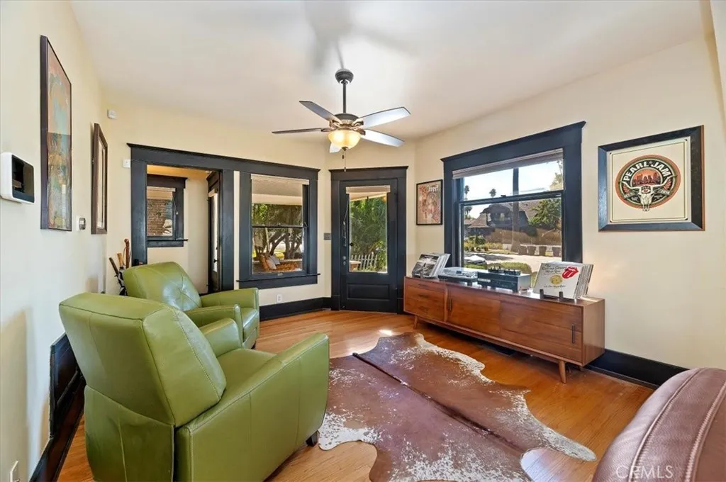 Where California historic charm meets modern luxury. This home has been awarded the Mills Act Contract. The Mills Act is a California program that offers significant property tax reductions to owners of qualified historic homes in exchange for preserving and maintaining their propertys historic character. Its a valuable incentive that helps homeowners save money while protecting local architectural heritage. Built in 1907 and nestled in the Evergreen Quarter Historic District and within the Downtown Specific Plan, this exquisite American Foursquare residence blends timeless craftsmanship with thoughtful modern updates. Perfectly positioned within walking distance of the Mission Inn, Fox Theater, Riverside Art Museum, Riverside Public Library and the citys best restaurants, this home captures the essence of Riversides architectural and cultural heritage. As you approach, youre welcomed by two stately entry points and a newly stained porch, the perfect setting for morning coffee or evening gatherings under the shade of mature trees. Step inside to a gracious formal sitting room, seamlessly flowing into a warm family room with rich woodwork and original detailing. The formal dining room is a showpiece of historic elegance, featuring built-ins and a brick fireplace crafted from bricks from the Mission Inn itself. The spacious kitchen combines timeless design with modern convenience, while a beautifully updated downstairs bath and separate laundry room add function and charm. Upstairs, youll find four spacious bedrooms, each with original moldings, hardwood floors, and abundant