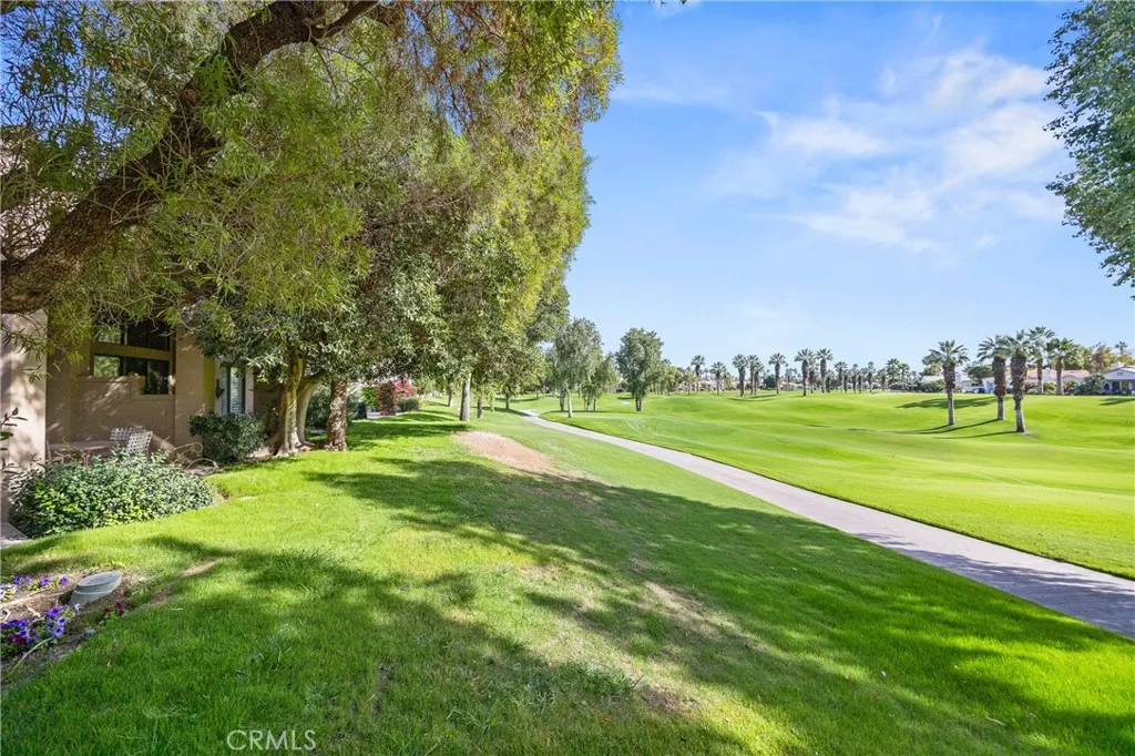 Best value in the PGA Palmer Private Residences. The condo resides on the prestigious Arnold Palmer golf course overlooking the 6th fairway and Santa Rosa Mountains. Single level 2-bedroom 2 bath home has an abundance of potential and is sold furnished and as is in its original condition. The location of the unit has breath taking views of the fairway, a serene pond, and shade provided by large trees and with mountains and palm trees in the background. The home has an impressive courtyard entry way and large windows showcasing the golf course. The carpet is new, and the furniture and golf cart are included. The home is a short walk from one of many community pools and the community has 24 hour gated security. The HOA fee includes exterior paint, roof, landscape, gardening, basic cable, pest control, community pools, trash pickup and 24-hour guard gated security. Make this your permanent or second home and enjoy having pride of ownership in PGA West on the golf course with a prime location and stunning golf course and mountain views.