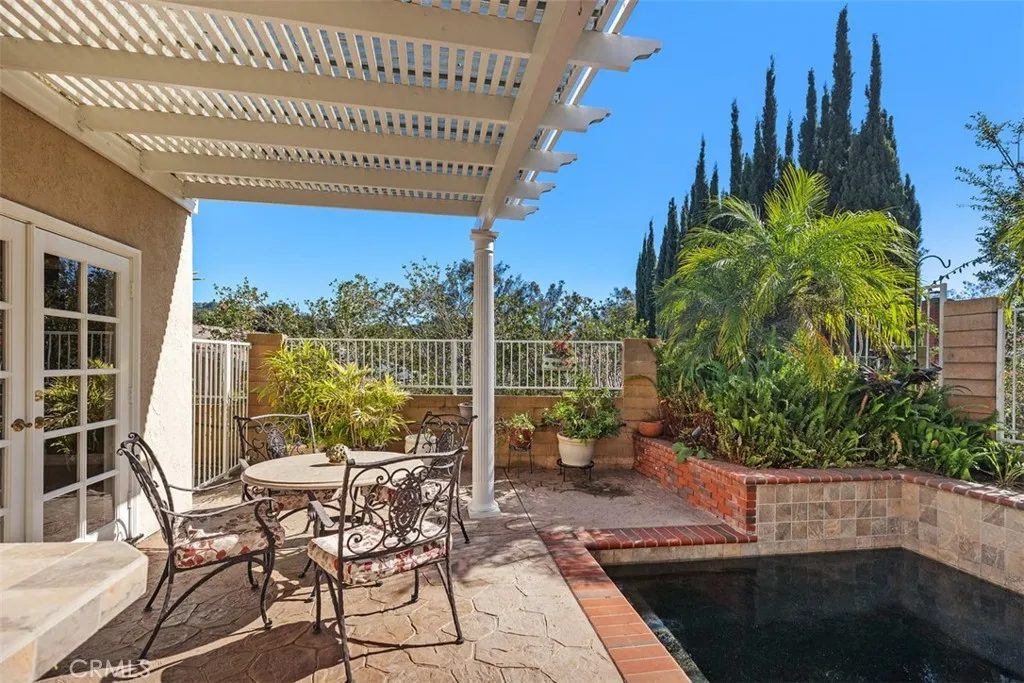 Your love for 22561 Demasia begins as you drive in along the 100+ acre Wilderness Glen park and trail system. If you love being surrounded by nature, have I got a house for you. This is a special lot, privately nestled into the hills with wilderness across the street. Additionally, it is one the most desired floor plans from this era of homes, with the best of all embellishments one could option a property with. We begin with a stately driveway and spacious 3 car garage. Fabulous hard scape adorns the front yard with a wrought iron gate enclosing the verdant front yard. This is a space that will captivate you morning after morning when the sun peeks over Saddleback Mountain which stands majestically above the ridge which separates this home from Lake Mission Viejo just 5 minutes down the road. Relaxation or exhilaration are yours between the resort style pebble tech salt water pool and spa in the back yard, complemented by a built in BBQ set up for at home good times, or you can take the family and friends down to the lake, as you'll be a member. You get all that, and you've yet to set foot in this brilliant 4 bedroom home, with an optional 5th on the main floor if needed in lieu of the existing oversized home office/bar with it's adjoining full bathroom. The formal living room is oversized and looks out upon the front yard through a wide boxed out window which really brings the outside in. The dining room is also sizable and opens up to the pool deck via a set of French Doors. The kitchen does not disappoint and is the hub of the home being open to the family room. This gr