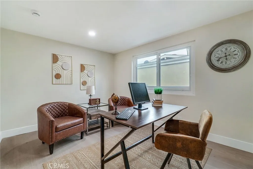 Welcome to 1381 Penrith Ln, Tustin, CA 92780, a beautifully fully remodeled, move-in ready home located in Tustins coveted Broadmoor community, known for its charm, walkability, and well-maintained surroundings. This single-story home features 3 bedrooms, 2 baths, and 1,526 sq ft of elegant living space, plus an upgraded bonus room that expands your usable living area and adds both comfort and value to the home, ideal for relaxation, a home office, or entertaining. Every detail has been thoughtfully elevated, including brand-new LVT flooring, recessed LED lighting, dual-pane windows, new glass doors, and a striking double-entry front door that sets the tone the moment you arrive. The open-concept layout flows seamlessly between the living, dining, and kitchen areas, centered around a charming chimney that brings warmth and character to the heart of the home. The newly updated U-shaped kitchen offers soft-closing cabinetry, sleek countertops, and stainless-steel finishes perfect for both everyday living and hosting. Custom barn doors add a designer touch, separating the living room from the office and the primary suite from its spa-inspired en-suite bath. Enjoy year-round comfort with central AC and heating, a freshly painted exterior that elevates curb appeal, a 2-car garage for secure parking and storage, and a SOLAR system that eco-conscious buyers will appreciate for long-term energy savings and peace of mind. Ideally located directly across from a peaceful park and just steps from the community pool and greenbelt, all with ultra-low HOA dues this home offers unmatched c