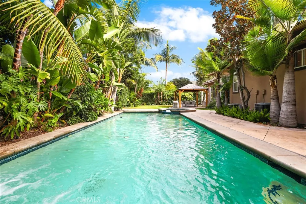 Tucked behind the gates of the prestigious 24-hour guarded Madrid community, this exquisite four bedroom three bath single-level residence offers the perfect blend of elegance, comfort, and resort-style living. A carefully landscaped gated courtyard and graceful archways set the tone as you step inside this beautifully designed home. The open-concept floor plan flows effortlessly, with arched transitions leading from one inviting space to the next. An elevated dining area overlooks the expansive living room and kitchenideal for hosting gatherings large or small. The chefs kitchen impresses with a grand center island featuring a built-in cooktop, double ovens, a convenient office nook, and French doors that open to an entertainers dream backyard. Step outside to enjoy your private oasis complete with a covered gazebo, sparkling saltwater pool, and relaxing spaperfect for outdoor dining and leisure. A separate family room with a half bath provides a versatile space for movie nights, a playroom, or even a home studio. The luxurious primary suite is a true retreat, highlighted by a stunning stone fireplace and an adjoining sitting room with built-in shelvingideal for a home library, office, or fitness area. French doors provide direct access to the backyard, while archways lead to the spa-inspired primary bath featuring dual vanities, a walk-in shower, a soaking tub, and an impressive walk-in closet. The three generously sized secondary bedrooms, a well-appointed laundry room with abundant storage, and direct access to the three-car garage add everyday convenience. With its ble