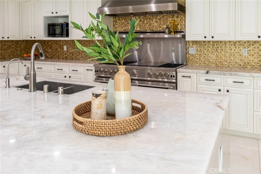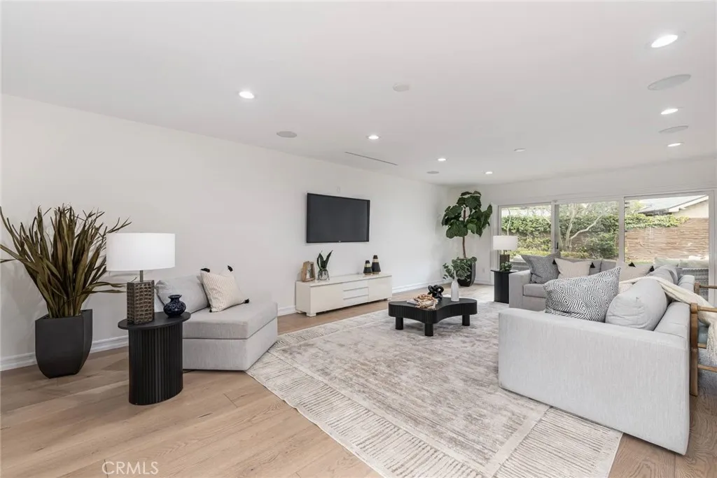 Experience the ultimate in refined privacy and exceptional value at this brilliantly reimagined single-level estate in Encino Hills exclusive Lake Encino enclave. Secluded on an expansive corner parcel spanning over one-third acre, this architectural gem seamlessly blends timeless sophistication with contemporary luxury, offering discerning buyers an extraordinary turnkey lifestyle. Originally crafted in 1964 and completely transformed with no detail overlooked, this 5-bedroom, 4.5-bath residence spans 4,338 square feet of thoughtfully curated living space. Wide-plank hardwood floors, expansive walls of glass, and an adaptable open floor plan bathe the interiors in natural light and invite effortless indoor-outdoor livingperfectly attuned to modern demands for versatility and privacy. Culinary enthusiasts will revel in the state-of-the-art gourmet kitchen, appointed with a dramatic quartzite waterfall island, Blue Star professional range, dual KitchenAid ovens, double Bosch dishwashers, a True Refrigerator with wine storage, integrated wine fridge, artisan tile work, and stunning marble flooring. The elegant atmosphere flows through the open-concept living and dining areas, highlighted by a sophisticated wet bar mirroring the kitchens bespoke finishesan entertainers dream. Retreat to the sumptuous primary suite, where dual walk-in closets, a flexible bonus room (ideal for nursery, gym, or home office), and a spa-caliber bath with high-design fixtures, custom cabinetry, and indulgent soaking tub create a private sanctuary. Four spacious secondary bedrooms, a custom laundry c