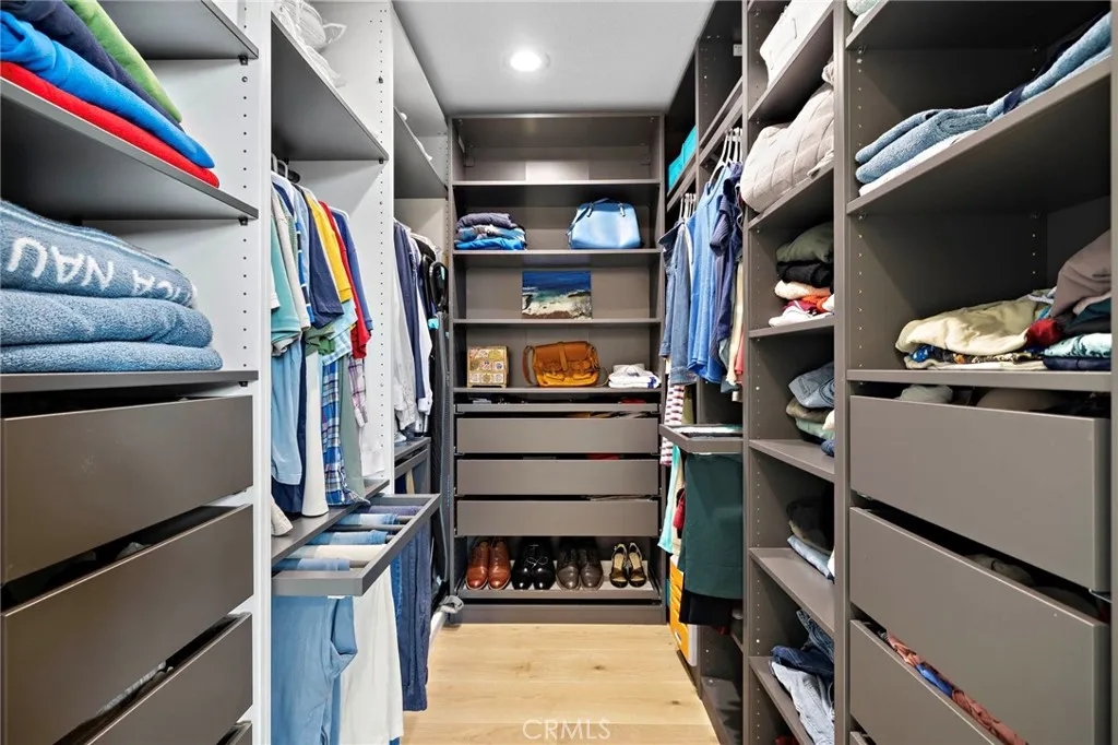 This exquisitely remodeled pool home, situated on a spacious and private corner lot, has it all! Highlights include a convenient downstairs bedroom and full bath, owned solar, brand-new central air and heat, and a complete whole-house repipe. Upon entering, youre welcomed by soaring vaulted ceilings, expansive dual-pane windows that fill the home with natural light, stunning white oak flooring, and an elegant, cozy fireplace. The fully redesigned kitchen showcases new custom cabinetry, quartzite stone countertops and backsplash, and premium Thermador stainless steel appliances. The expansive primary suite offers vaulted ceilings, a large walk-in closet with custom built-ins, and a luxurious spa-inspired bathroom. This impressive space features a massive walk-in shower with a single-slab granite accent wall, high-end stone finishes, built-in LED shower lighting, anti-fog LED mirrors, a luxury smart toilet with bidet, and a thoughtfully relocated washer and dryer for ultimate convenience. Additional upgrades include a whole-house water filtration system, fresh designer interior and exterior paint, a Tesla EV charger, and a custom modern entry door. The resort-style backyard is perfect for entertaining, complete with a saltwater pool and spa featuring new Aqualink smart controls, a waterfall slide, and a new motorized StruXure smart pergola. Enjoy full Lake Mission Viejo membership and an exceptional interior location with quick, easy freeway access. All of this within walking distance to award-winning schools, parks, shops, and restaurants. Discover everything this remarkable
