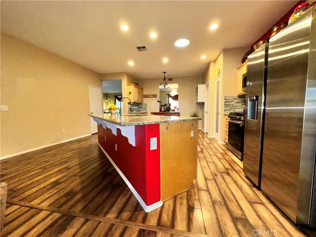 Welcome to this spacious and inviting single-story, thoughtfully designed to offer comfort, convenience, and room to grow. Featuring 4 comfortable bedrooms each equipped with celling fans. There are two well-appointed bathrooms, this home provides ample living space. Step inside to an expansive living and dining area, perfect for gatherings, entertaining, or relaxing evenings at home. The large, open kitchen offers skylight and a farmhouse kitchen sink, generous granite counter space, a pantry, stainless steel appliance's and cabinetry, making meal preparation effortless and enjoyable. Two of the secondary bedrooms feature walk-in closets, offering exceptional storage and added functionality. Retreat to the luxurious primary suite, complete with bamboo flooring, a walk-in shower, separate jet-stream soaking tub, and a huge walk-in closet that ensures your space stays organized and serene. With its open layout, thoughtful design, and abundant storage, this home is a wonderful balance of style, space, and comfort.