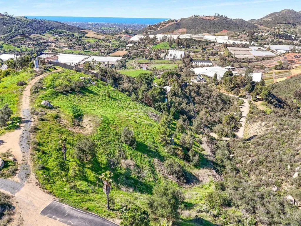 Perched atop the rolling hills of San Marcos, this extraordinary mountaintop property presents a rare chance to own more than 31 acres of ocean-view land with panoramic vistas stretching from the inland valleys to the Pacific. Offering both a 28.72-acre parcel and an additional 3-acre lot, the property is zoned A70 with the sought-after L animal designator, allowing for flexible agricultural and residential uses. Set at approximately 1,175 feet in elevation, the land enjoys uninterrupted 360-degree views, remarkable privacy, and exceptional development potential. County guidelines allowing for 4-acre minimum lot splits create the opportunity to build up to seven custom homes, opening the door for developers, multigenerational buyers, homesteaders, or investors seeking a long-term land hold in one of San Marcos most desirable growth corridors. More than $1 million in infrastructure has already been completed, including a producing private well with a booster pump, two water meters, two electric meters, recently paved access roads, three possible entry points, and multiple flat building pads oriented to capture sweeping views. The property is surrounded by upscale estates, boutique agricultural operations, and peaceful rural retreats, making it a prime location for luxury development, a private family compound, or a self-sustaining homestead.