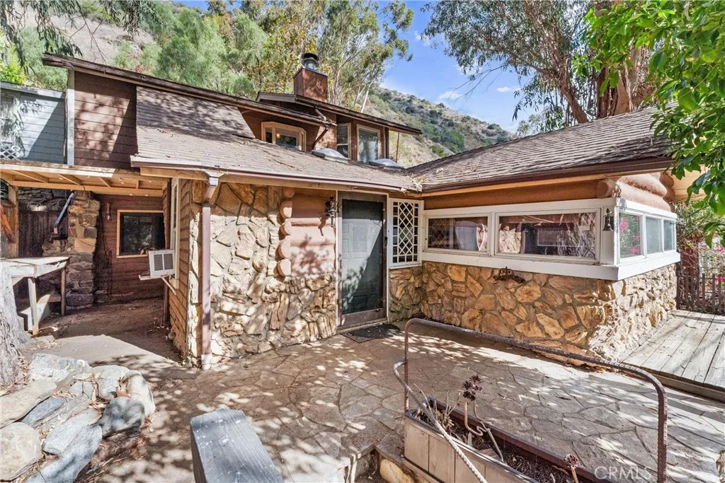 28751 Sycamore Drive, Silverado, CA 92676 is a rustic canyon retreat in the heart of Silverado Canyon, just minutes from Irvine, Foothill Ranch and the 241 Toll Road. Surrounded by mature trees, a seasonal creek and terraced outdoor spaces, this home offers a rare blend of nature, privacy and access to Orange County job centers and amenities. Per the assessor, 28751 Sycamore Drive is recorded as a 2 bedroom, 1 bathroom home. In addition to the two designated bedrooms, the property includes additional finished spaces that can function as a den, home office, studio or extra sleeping quarters, giving buyers flexible options for multi-use living, work-from-home needs or hosting guests. A wood and iron entry gate leads to a welcoming courtyard and elevated front deck with canyon views, a producing orange tree and space for lounging, grilling and outdoor dining. Inside, the main level features a spacious living room with high ceilings, log-style walls, hardwood floors and a wood-burning fireplace that creates a true cabin ambiance. A separate dining area with built-in buffet and stone accent detail connects easily to the remodeled kitchen, which offers white cabinetry, granite counters, an industrial-style center island and an adjacent utility / pantry room with full-size laundry. The main floor bedroom is wrapped in windows and includes a vintage built-in dresser, while the updated main-level bathroom has an exterior door for quick access to the side yard, pet area or garden. Upstairs, the additional finished areas provide multiple layout possibilitiesideal as a den, office, cre