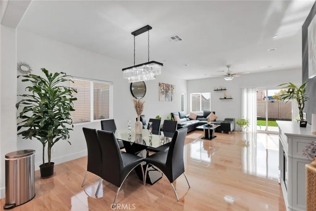 Beautiful 2021-built two-Story Home with an ideal layout & modern amenities! Welcome to this newer-built 2-story residence offering 1,981 SqFt of living space and a thoughtfully designed floor plan. Situated on a large lot, the backyard features lush green grass, a patio area, and tall white vinyl fencing for exceptional privacy perfect for relaxing or entertaining. Curb appeal shines with colonial-style windows, a ceramic tile roof, drought-tolerant landscaping, and a charming arched front porch. An attached 2-car garage adds convenience. Inside, the open-concept first floor seamlessly connects the kitchen, dining area, and living room. The kitchen is complete with an oversized island, pantry, earthy stone countertops, and stylish two-tone cabinetry. The dining area sits cozily beneath a beautiful chandelier and near the stunning fireplace that leads into the inviting living room, enhanced by abundant natural light from large windows and the sliding glass door. The primary bedroom with the primary bathroom, a quarter powder room, and laundry room complete the main floor. The spacious primary bedroom includes a vanity area leading into the en-suite bathroom featuring dual sinks, an oversized walk-in shower, and a walk-in closet. Upstairs, a generous landing provides the perfect space for an office, playroom, or lounge area. Down the hall are 2 bedrooms and 1 full bathrooms. This move-in-ready home combines modern design, comfort, and privacy; an exceptional opportunity you wont want to miss so schedule your showing appointment and submit your best offer now!