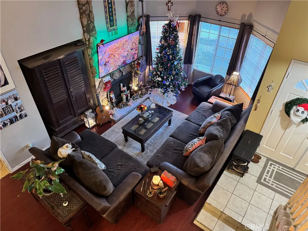 Imagine coming home to this stunning, two-story residence, perfectly situated on a corner lot directly across from Chaparral Park. Featuring drought-tolerant landscaping (xeriscaping), you are welcomed by elegant double doors that open up to high-vaulted ceilings that add to a bright, inviting living space. The living room flows effortlessly into the dining area and heart of the home, the open-concept kitchen. Whether preparing holiday meals or just enjoying everyday moments, this kitchen is a home owner's dream. The first floor also features a convenient half-bath, ideal for guests. Attached to the home is a 320 sq. ft. enclosed patio which has been converted into two versatile bonus living spaces that include air conditioning. One can serve as a den or family room that opens directly to the covered patio overlooking a sparkling swimming pool and spa. The backyard is fully xeriscaped, providing a private, relaxing oasis. The two-car garage has been thoughtfully divided to include both an exercise space with a tooling workbench and a cozy movie theater room, adding versatility and fun to the homes design. The second floor features a main suite with a private bathroom, along with three additional bedrooms and a full bathroom. A charming balcony on the landing overlooks the first floor, offering a beautiful vantage point of the living space below. Just behind the balcony, a sunlit loft provides a scenic view of the backyard and the rolling Southridge Hills. This home is located near the 10, 60, and 15 freeways, conveniently placing so many of Southern California's hot spots w