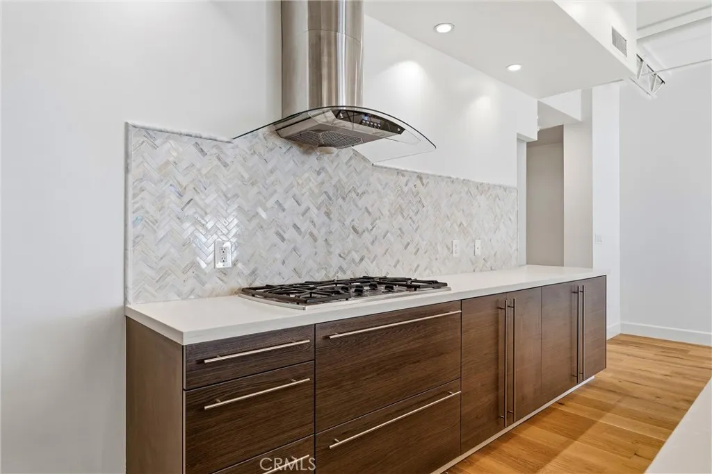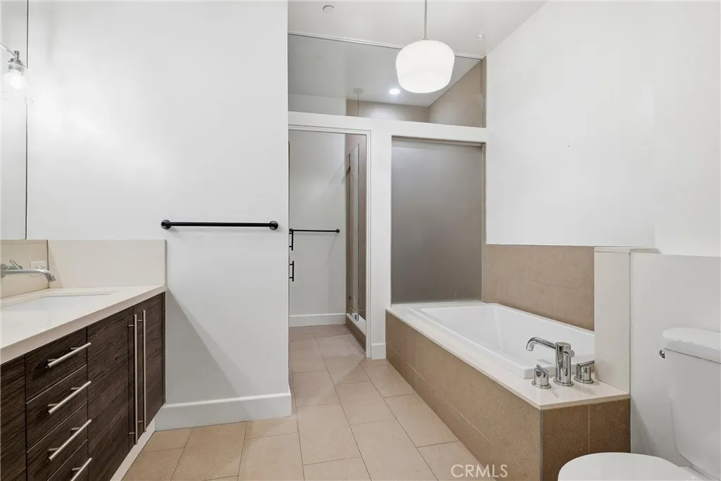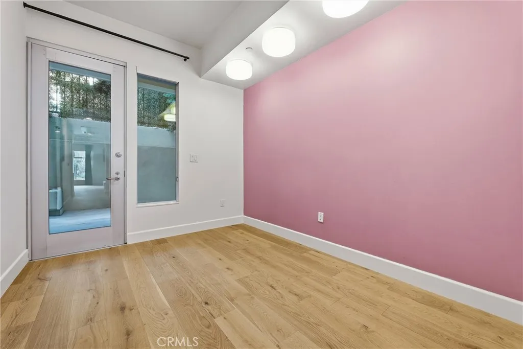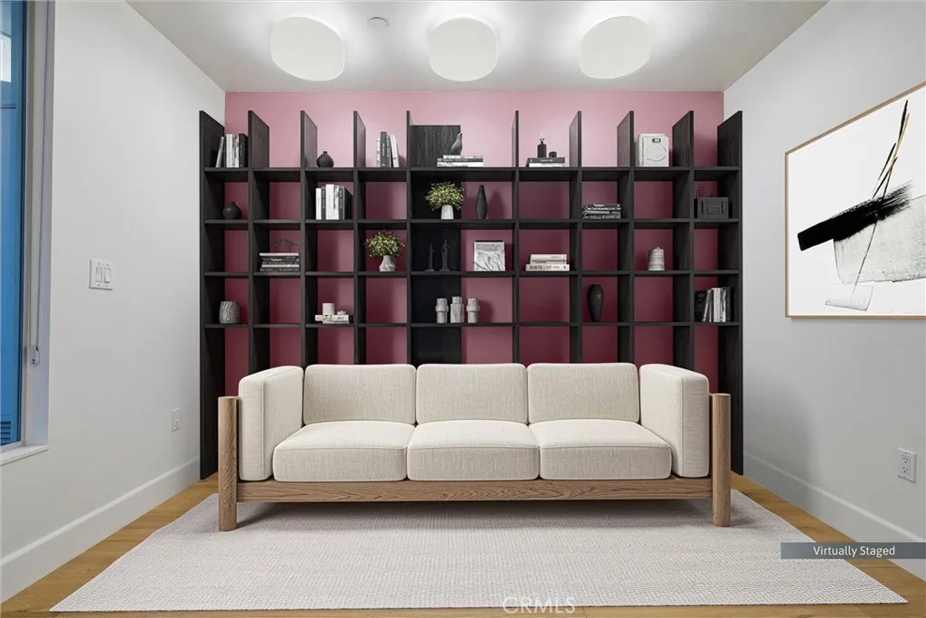 Architectural Loft located in a private courtyard-style building built in 2009 on a quiet historic street near restaurants, shops, and nightlife. This spacious 1,280 sq ft first-floor residence features one bedroom plus DEN/Office, 1.5 baths, and two expansive outdoor spaces. High ceilings, engineered wide-plank oak flooring, recessed lighting, designer pendants, and fresh interior paint enhance the open layout. The chefs kitchen opens to the living area and offers custom quartz countertops with island, custom cabinetry, marble chevron tile, Zellige fireplace tile accents, and premium stainless steel appliances. The primary suite includes a massive remodeled walk-in closet and a luxurious bathroom with double vanity, soaking tub, and glass-enclosed walk-in shower, plus a separate powder room for guests. Additional features include a Nest thermostat, reverse osmosis Waterdrop FILTRATION system, tankless water heater, recently serviced HVAC, washer and dryer, custom blinds, curtains, dedicated storage room, and two secured parking spaces with EV charger. The architectural building offers secured controlled access with high-tech facial recognition entry.