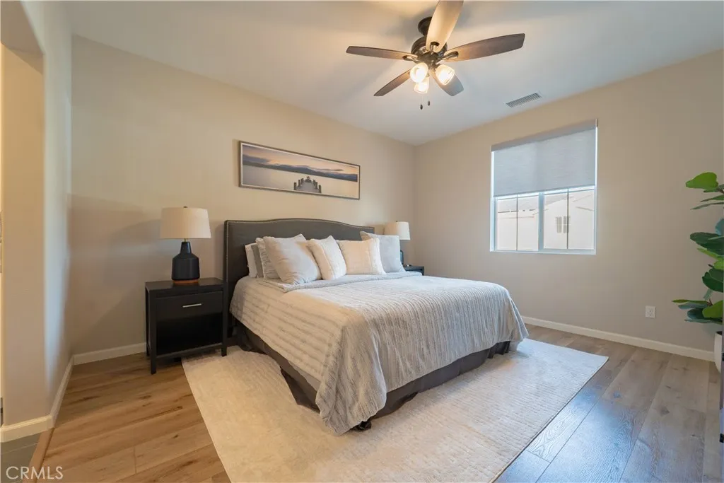 Experience modern living in this beautifully upgraded 2023-built 4-bedroom, 3-bathroom home offering approximately 1,895 sq ft, located within the highly desirable gated Shady Trails community in North Fontana. This thoughtfully designed residence features approximately $80,000 in premium upgrades, delivering exceptional style, comfort, and everyday functionality. The open-concept main level showcases a stunning kitchen featuring quartz countertops, upgraded cabinetry, designer backsplash, farmhouse sink, custom faucet, sleek black hardware, under-cabinet lighting, and a dramatic quartz waterfall-edge center islandperfect for both everyday living and entertaining. Recessed lighting, upgraded interior paint, automatic window shades, and wood flooring throughout further enhance the homes modern and cohesive design. Custom wood and steel stair railings lead to the upper level, where the spacious primary suite offers a beautifully upgraded bathroom with quartz countertops, enhanced tile flooring, black hardware, a tiled shower with upgraded glass enclosure, and mirrored closet doors. The additional bathrooms also feature quartz countertops and upgraded tile flooring, while four upgraded ceiling fans provide added comfort throughout the home. Additional highlights include designer chandeliers, TV-ready wall outlets with in-wall wiring, upgraded lighting throughout, and a finished garage with epoxy flooring and a 220V electric vehicle hookup. Enhanced curb appeal welcomes you with upgraded stonework and low-maintenance artificial turf at the front entry. Residents of Shady Trails