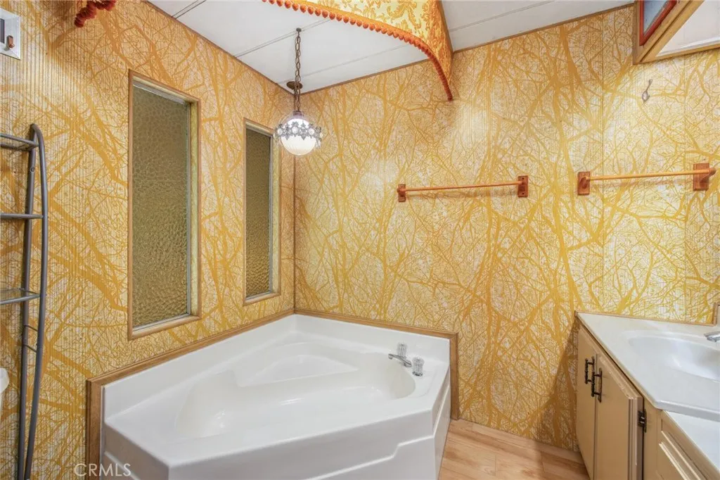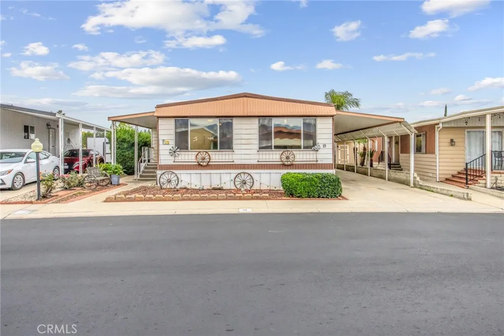 Welcome to Orange Grove Mobile Home Estates, located in the beautiful city of Redlands. As you approach the home, youre greeted by a charming Western-themed landscaped front yard that sets the tone for this unique and inviting property. Step inside to a bright and airy living room featuring wall-to-wall windows on two sides, allowing natural light to fill the space. The dining area is attached and showcases a built-in china hutch, perfect for storage and display. The kitchen offers ample cabinetry and comes equipped with stainless steel appliances. To the left of the living room is a spacious family room with an entire wall of built-in shelving, ideal for books, dcor, or entertainment. Just off the family room is a generously sized full guest bathroom. A sliding glass door leads to an enclosed sunroom surrounded by windows, creating a relaxing space to enjoy year-round. At the back of the home, youll find a guest bedroom with a walk-in closet, as well as a primary bedroom featuring its own walk-in closet and private ensuite bathroom. The property is fully landscaped with a wraparound yard and includes a Western-themed oversized shed, making it perfect for entertaining. Enjoy added privacy with no homes directly behind the property and delight in having a space right next to the clubhouse. This vibrant community offers exceptional amenities, including a pool, spa, fitness center, RV storage and onsite laundry facilities. With low space rent and close proximity to the University of Redlands, shopping, dining and freeway access, this home offers both comfort and convenience. T