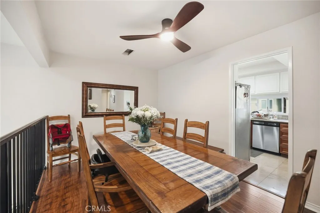 This charming home offers the perfect blend of coastal living and everyday convenience. Located just minutes from the beach and within easy walking distance to 5 points Plaza which includes your favorite local shops, restaurants, and Trader Joes, it delivers an ideal lifestyle setting. The cozy living room features a welcoming fireplace and opens to a private patio that overlooks a serene, enclosed greenbelt, with the community swimming pool only a few steps away. Abundant natural light fills the home, enhancing its warm and inviting atmosphere. An open dining area on the second level overlooks the living room below, creating an airy, connected living space. The galley-style kitchen is thoughtfully designed and includes a dedicated laundry area for added convenience. Upstairs, the spacious primary bedroom includes an ensuite bathroom, accompanied by two additional bedrooms and a full guest bathroom making it perfect for family, guests, or a home office setup. Residents can also enjoy resort-style association amenities, including a pool, sauna, and tennis courts, making this home an exceptional opportunity to enjoy relaxed coastal living with comfort and style.