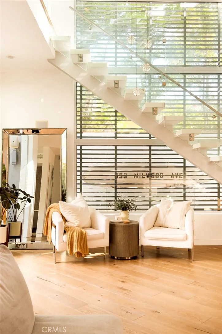 Experience the beauty of Venice Beach living at 936 Milwood a modern architectural with effortless indoor-outdoor flow. Behind a private gated entry, light-filled interiors open through floor-to-ceiling glass to a sparkling pool, fire pit, and courtyard. The main levels open floor plan showcases rich hardwood floors and bespoke finishes, while upstairs offers a serene primary suite with bonus space, an additional bedroom, office, and den. The third floor consists of a family room that opens into a rooftop deck. At the back of the house, a separate staircase leads to a private guest unit with attached bath, providing ultimate flexibility. On one of the best palm tree lined streets in Venice and just moments from Abbot Kinney and Lincoln Blvd boutiques, cafes, and the beach.