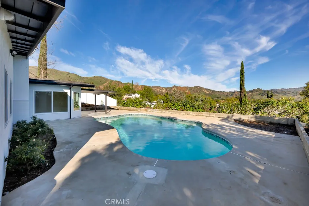 Discover this stunningly remodeled pool home in the desirable Granada Highlands area of Granada Hills. Boasting 4 spacious bedrooms and 2 modern bathrooms, this impressive single story residence covers 2,077 square feet and is situated on a generous 11,516 square foot lot. Built in 1965, it has been meticulously transformed into a smart home equipped with the latest technology and luxurious features. Accessed via a private driveway, this home offers breathtaking city and mountain views. Every aspect of the property has been upgraded, including a new roof, copper plumbing, heating and air conditioning systems, energy-efficient windows and new doors throughout, and a brand-new electrical panel. The inviting living room is enhanced with a fireplace, surround sound, and recessed lighting, creating the perfect ambiance for relaxation and entertainment. The gourmet chefs kitchen is a culinary dream, complete with custom European cabinets, quartz countertops, a 36-inch industrial range, a huge center island and ample recessed lighting. It seamlessly flows into a spacious great room, making it ideal for gatherings. The primary en-suite bedroom is thoughtfully positioned away from the additional three bedrooms, ensuring privacy with a completely remodeled attached bath with custom finishes. The additional bedrooms share a beautifully remodeled bathroom. This smart home is wired with an automation lighting system, security cameras and surround sound in the livingroom. Step outside to the newly landscaped entertainers yard, featuring all new pool equipped with all new equipment, perfe