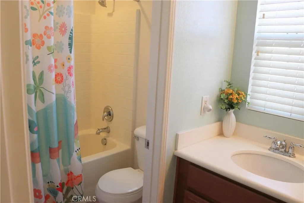 Minutes from shopping and dining, this quaint 3 bedroom, 2.5 bathroom, 2 story home is near all Murrieta has to offer. Upon entering the home, guests are greeted by the living room with a charming fireplace, and interior wood window shutters. The kitchen which includes stainless steel appliances, granite countertops, and island seating, opens into a generous second living area filled with natural light, making it perfect for combined activities or hosting special occasions. Off the kitchen is a large closet great for under stairs storage. For convenience, a powder room is downstairs. Upstairs, the expansive primary suite includes a WIC closet, dual sinks, and a tub/shower combo. Across the hall are two spacious bedrooms that share a Jack and Jill bathroom with dual sinks. A laundry room is upstairs. The backyard is low maintenance and great for morning coffee, or unwinding. Skyview Ridge Community Association (HOA) features several neighborhood amenities such as: heated pool and spa, dog park, picnic area, playground, beautifully landscaped greenspaces, and maintenance of the lush front yard. Enjoy the new Energy Star AC unit replaced in 2023 and an upgraded 50 gallon water heater in 2020.