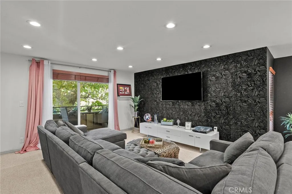 Right off the yellow brick road and discreetly tucked away from all that glitters is a serene Hollywood oasis you can call home. Sip your morning coffee on a balcony perched in the remaining wilderness of the swankiest city in the country. Come home and unwind with a glass of wine in that same space. Ready for a night on the town? It's literally right around the corner. The home itself is as glamorous as it's location. Custom black textured wallpaper in the living room brings a touch of sophistication to the earthy vibe. Quaint and cozy kitchen with stainless steel appliances. Luxurious slat wood paneled wall in the primary bedroom dramatically accents any bed frame you choose to put in front of it. Separate shower and tub in the primary bath. Modern updated powder room in the entry and a 2nd space that can be used as a bedroom or office. All brand new windows and sliding glass patio door. The community is immaculately maintained and equipped with a 2 gorgeous pools, gym, tennis court, clubhouse, sauna, and spa tub. High Speed Internet Included along with Earthquake insurance!