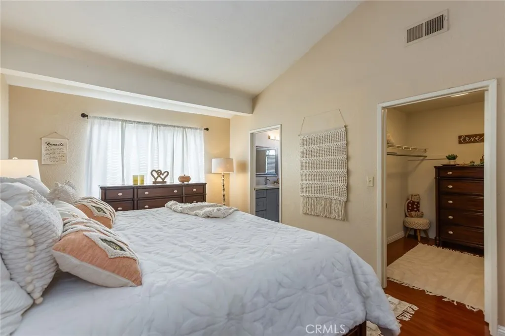 Welcome home to a light-filled 3-bedroom, 3-bath end-unit townhome with a desirable multi-level layout and thoughtful design throughout. The entry opens to a spacious living room highlighted by over 13 Foot ceilings, arched windows, rich wood flooring, and a cozy fireplace, creating an inviting space to relax or entertain. The open-concept living and dining areas flow seamlessly, while all three bedrooms are located upstairs, providing privacy and separation from the main living spaces. The primary suite features a dual-sink vanity en-suite bath, and a walk-in closet space. The two additional bedrooms are generously sized and ideal for guests or a home office. Enjoy indoor-outdoor living with a private balcony, perfect for morning coffee or evening grilling. Additional highlights include in-unit laundry, abundant storage, and a direct-access 2-car garage. Nestled within a small close-knit community, this townhome offers comfort, convenience, and a layout that lives like a single-family home. Conveniently located near major freeways, parks, schools, shopping centers and everyday amenities - this home offers the added appeal of a well-located community. A wonderful opportunity for buyers seeking space, functionality, and style in a turnkey home. Don't miss this fantastic opportunity and schedule a tour today!
