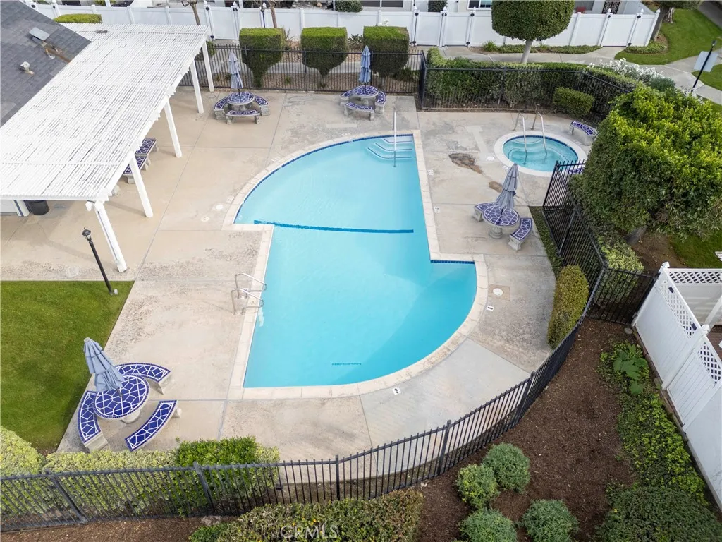 Situated within a gated townhome community offering a pool, spa, and well-maintained common areas, this end-unit residence features a functional layout with added privacy and a generously sized private patio area rarely found in similar homes ideal for outdoor living or entertaining. The main living area offers vaulted ceilings, a skylight that fills the space with natural light, and a brick fireplace creating a warm and cozy atmosphere. The kitchen is finished with granite countertops and is complemented by tile flooring that extends through the dining area. The main floor also offers a bedroom and full bathroom providing flexibility for guests, multigenerational living, or a home office. Upstairs, the primary suite offers privacy and comfort, accompanied by an en-suite bathroom. The upper level also includes a spacious loft with access to a private balcony, ideal for a secondary living space or workspace. Conveniently situated near shopping, dining, parks, and major commuter routes, this home presents a well-balanced combination of location, community amenities, and a low-maintenance lifestyle.