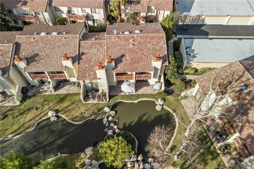 Welcome home to a bright, easy-living 2-bedroom, 1.5-bath condo where the view is part of your everyday. The open floorplan flows seamlessly from the living room to a slider that opens to your private patio, perfectly positioned to take in the peaceful stream, waterfalls and lush landscapingcomplete with koi, turtles and ducks gliding by. At the heart of the home is a beautiful new kitchen with quartz countertops, bar seating, a pantry and an open connection to the living areaideal for hosting, homework at the counter, or slow weekend mornings. Luxury Vinyl wood flooring downstairs adds a clean, modern look throughout, and big-ticket upgrades bring confidence with a newer A/C and new water heater. Both bedrooms are designed for comfort and privacy, each featuring built in closet organizers and its own attached private balconya rare bonus for fresh air, quiet moments, and that I can breathe here feeling. A detached 1 car garage rounds out the convenience. Enjoy resort-style community amenities including a pool, tennis courts, gazebo, and beautifully maintained grounds that make every walk feel like a mini getaway. This is more than a townhomeits a lifestyle youll look forward to coming home to.