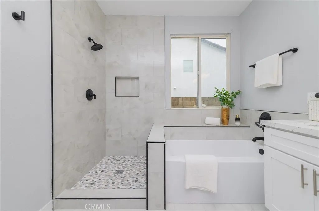 Tucked at the end of a quiet cul-de-sac, this inviting two-story home welcomes you with a charming front porch and a layout designed for both everyday comfort and easy entertaining. The spacious primary suite is conveniently located on the main level and features a separate dressing area, a walk-in closet, dual-sink vanity, an oval soaking tub, and a separate walk-in showeryour own private retreat. Upstairs, youll find four additional bedrooms plus a central bonus/game loftperfect for a playroom, media space, homework hub, or second lounge. Downstairs offers both a formal living and dining combination for special gatherings, along with an open family room and kitchen at the rear of the home where everyone can come together. Cozy up by the gas fireplace or open the slider to enjoy indoor-outdoor living. The kitchen is well-appointed with a center island sink, built-in stainless steel microwave and oven, stainless dishwasher, and a gas range, with tiled counters and flooring for easy upkeep. Step outside to a private backyard enclosed by block wall and wood fencingideal for relaxing, entertaining, or letting pets play. Additional conveniences include an indoor laundry room with direct access to the three-car garage, welcome home