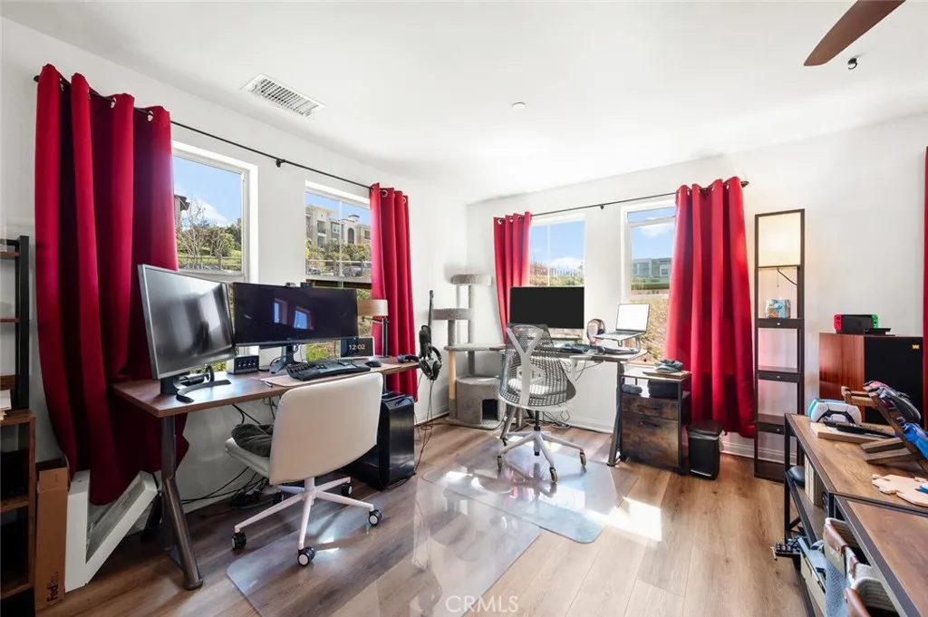 BETTER THAN BRAND NEW and PRICED TO SELL! ASSUMABLE VA LOAN! Highly upgraded townhome located in master planned community of Melrose Heights. This rare corner lot home sits at the end of a Cul de sac and boasts 2,193 sf of living space. It lives as a single-family home and features 3 bedrooms, 2.5 bathrooms, large bonus room, outdoor space and a 2-car attached garage. The open floor plan features entry level great room and modern kitchen completed with quartz countertops, shaker style cabinets, large island and full wall designer tile backsplash. All bedrooms are conveniently located on the second floor. Primary suite is finished with white quartz countertops, walk-in shower, spa like soaking tub, and an oversized walk-in closet. Top floor offers an open floor bonus room that can be utilized for a home theater, gym, play area, or a secondary family room. This fantastic home is filled with natural light as it is a corner unit and has an abundance of windows throughout. Upgrades include luxury vinyl plank flooring, stainless steel appliances, purchased solar panels, designer tile full wall backsplash, EV charger, video capable garage door opener and much more. The home has smart features throughout, includes EERO booster units for WIFI, smart dual zone thermostat, and an electronic lock. Dedicated laundry area with full size appliances is conveniently located on the second level. Wrap around private patio is great for grilling outdoors, your personal garden, relaxation, or as a safe enclosed area for kids or pets. Additional features: First and second floor ceiling height is