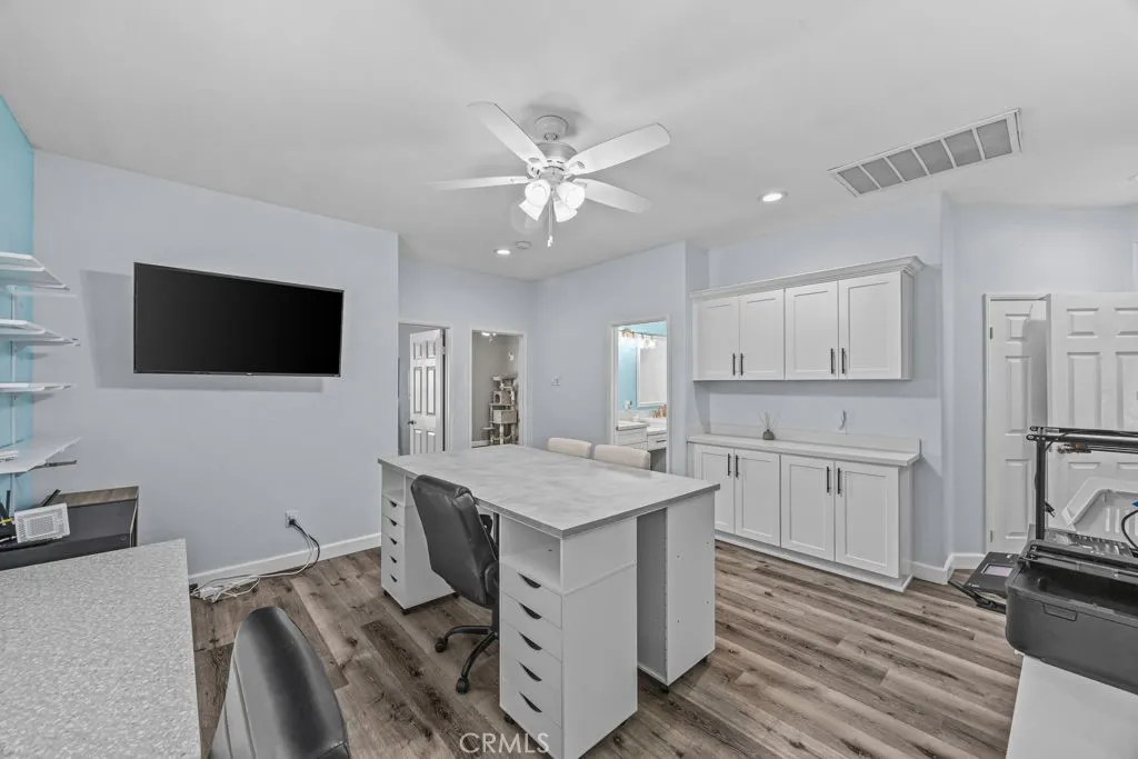 Highly upgraded throughout, this highly sought-after single-story ranch-style home offers 5 spacious bedrooms, 3 bathrooms, with 2470 square feet and RV parking. The home features luxury wood like flooring throughout, along with beautifully upgraded kitchen and bathrooms that add both style and functionality. The open-concept floor plan includes a large kitchen island overlooking the spacious family room, creating the perfect setting for entertaining and everyday living. In addition, the home offers a versatile bonus space at the front of the house that can easily be used as an office, sitting area, playroom, or flex space to fit your needs. Enjoy the charm of the covered front courtyard, ideal for relaxing or welcoming guests. Step outside to a landscaped backyard featuring a newly installed covered patio, perfect for outdoor gatherings and enjoying Southern California living. The property is equipped with leased solar systems to be assumed by the buyer. Roughly 3035 minutes to Lake Skinner and close to Temecula Wine country. Don't miss the opportunity to own this exceptional homeschedule your showing today!