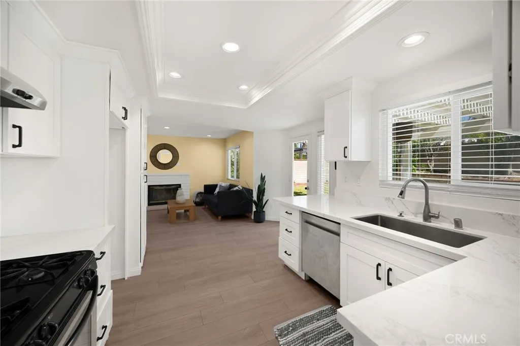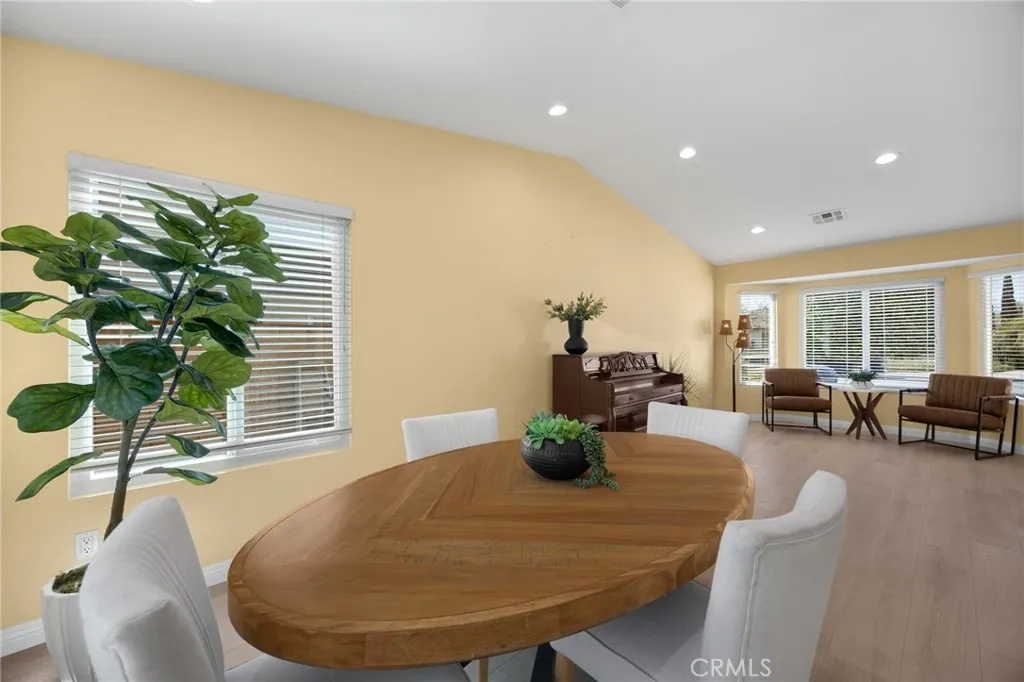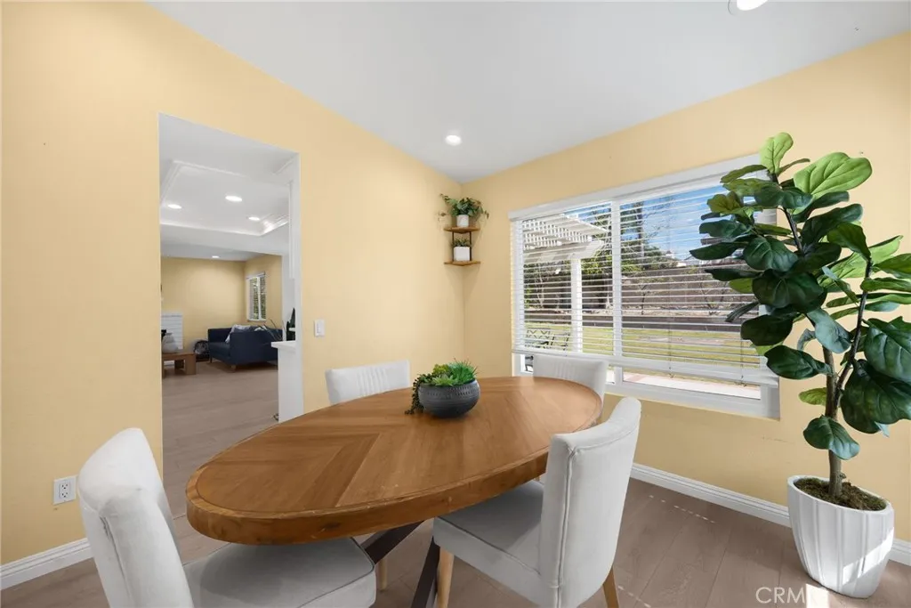 Welcome to this lovely Diamond Bar residence offering 3 bedrooms, 3 bathrooms, 1,545 sq ft of comfortable living space, an attached two-car garage, and timeless charm from its 1988 build. Stepping inside, the living room greets you with vinyl flooring that extends throughout the main level, a bright bay window, and recessed lighting that creates an inviting atmosphere. The living room transitions seamlessly into the formal dining area, where large windows bring in natural light and the layout connects effortlessly to the kitchen. The remodeled kitchen features custom white cabinetry, quartz countertops, and a window above the sink framing a peaceful view of the backyard. Just beyond, the family room offers a warm gathering space highlighted by a gas fireplace and convenient proximity to the kitchen. Also on the main level are a guest half bathroom and a dedicated laundry room, adding everyday practicality. Upstairs, two guest bedrooms share a beautifully updated three-quarter bathroom. The primary bedroom suite sits on the opposite end of the hall, offering an extra-large retreat complete with a stunning en-suite full bathroom. Outside, the backyard invites relaxation and entertaining with its large covered patio, generous lawn, and classic brick hardscape. Other improvements include a new HVAC system (1yr old), three year old roof, and a two year old tankless water heater. The location places you near award-winning schools, great restaurants, and abundant shopping options, making this home an exceptional opportunity in a highly desirable community.