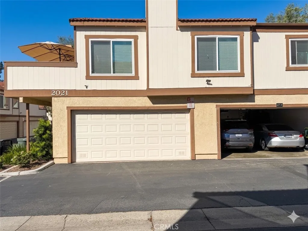 Well-maintained end-unit 2-bedroom, 1.5-bath condo offering 1,254 sq ft of comfortable living space in a desirable Ontario community. This two-level home features an open living and dining area with abundant natural light, enhanced by vaulted ceilings and a cozy fireplace in the living room, creating an inviting and spacious feel. Dual-pane windows and laminate flooring add to the homes clean and functional design. The kitchen has been updated with stainless steel appliances and upgraded cabinetry. Both bedrooms are generously sized, including a primary bedroom with its own en-suite bathroom, offering added privacy and convenience. The private patio provides a great space for outdoor seating or relaxing. An attached 2-car garage with laundry hookups offers direct access and everyday convenience. Community amenities include a pool and spa, and HOA dues cover water, sewer, trash, and community patrol services. Conveniently located near shopping, dining, and major freeways, this home offers a well-balanced combination of comfort, layout, and location; ideal for first-time buyers, downsizers, or investors.