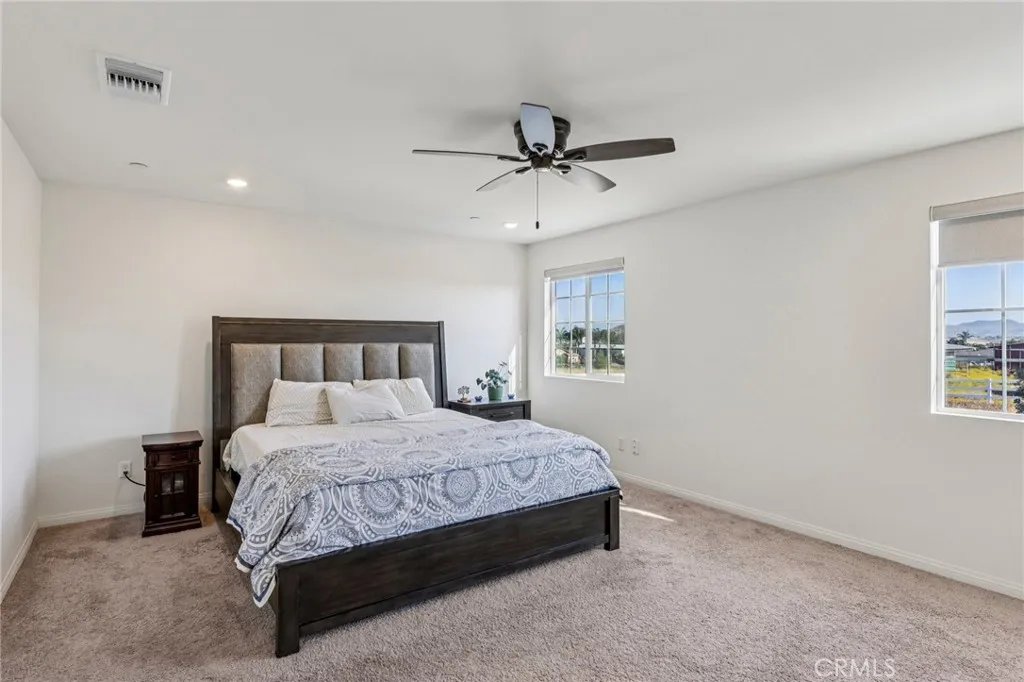 Welcome to this bright and spacious home located in the desirable Obsidian community, offering a thoughtfully designed layout and inviting indoor-outdoor living. The main level features a convenient bedroom and full bathroom with a walk-in showerideal for guests or multigenerational living. The open-concept living, dining, and kitchen areas are filled with natural light, creating a warm and welcoming atmosphere. The spacious kitchen showcases fresh white cabinetry, granite countertops, stainless steel appliances, a center island, and ample storage for all your needs. Stylish LVP flooring runs throughout the downstairs, adding both durability and modern appeal. A sliding glass door from the dining area provides easy access to the backyard. Go outside to a generously sized yard with a large patio and garden space, perfect for outdoor entertaining, relaxing, or cultivating your own garden. Upstairs, a versatile loft offers additional living space for a home office, media room, or play area. The primary suite features lovely views, a walk-in closet, and an en-suite bathroom with a dual-sink vanity. Two additional bedrooms share a full bathroom, and a convenient upstairs laundry room completes the second level. Additional upgrades include a whole-house water filtration system and leased solar panels for improved efficiency and comfort. Residents of Obsidian enjoy beautifully maintained grounds with BBQ areas, outdoor picnic spaces, walking paths, a playground, and a dog parkproviding a wonderful community lifestyle to call home.