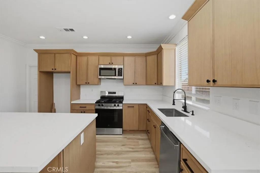 You can't miss this spacious REMODELED home that boasts 5 bedrooms and 3 full bathrooms. On the first level there is a bedroom and a FULL bathroom. Great for anyone who can't go upstairs. Upstairs there are 4 more bedrooms and a spacious loft area. Upstairs there's a spacious master bedroom with a master bathroom that has a shower and a tub. Master bedroom has a WALK-IN closet. Home has been remodeled throughout. New Vinyl flooring throughout the home. A NEW beautiful kitchen with trendy kitchen cabinets, new quartz countertops, and NEW stainless-steel appliances. A new water heater, new bathroom vanities and much more to see, don't miss this one. Big backyard and big side yard. Would make a great RV or trailer parking space.