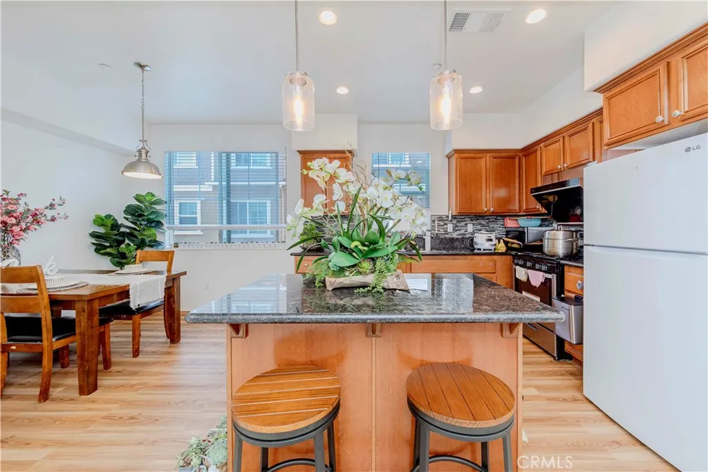 Welcome to this wonderful and move-in condition home in the gated Cobblestone community featuring 4 bedrooms and 2.5 bathrooms. Upon entering front door, you are greeted by a bright and airy open living, dining, and kitchen area. Modern kitchen features granite countertop and large center island, gas stove, built-in microwave, range hood, oven, dishwasher and stainless-steel sink. Half bathroom on this main floor and a coat closet for guest's convenience. Covered private access patio perfect for your morning teatime. Wood flooring in the kitchen area and luscious carpeting throughout the home, staircase connecting to the living quarters on the 3rd floor and to the garage and bonus room on the 1st floor. Taking the stairs up, leads to 2 sizable bedrooms to the left, a full bathroom at the middle and a loft which is perfect to be converted into a mini library or family area. To the right wing of the upstairs sits the laundry closet and a large master suite. The spacious master suite features a bathroom with his-and-her sink, shower, and a private toilet room. Taking the stairs down to 1st floor, sits the attached spacious two car garage, storage closet and a large bonus room with a closet. This bonus room can be your 4th bedroom (it is on 1st floor), office, home gym, entertainment room, the possibility is endless. All this is conveniently situated in a very well-maintained, gated community with wonderful amenities including pool, spa, 2 playgrounds and dog park. It is close to many local restaurants, shopping plazas such as Costco, Target, Montclair Mall, local parks and bor