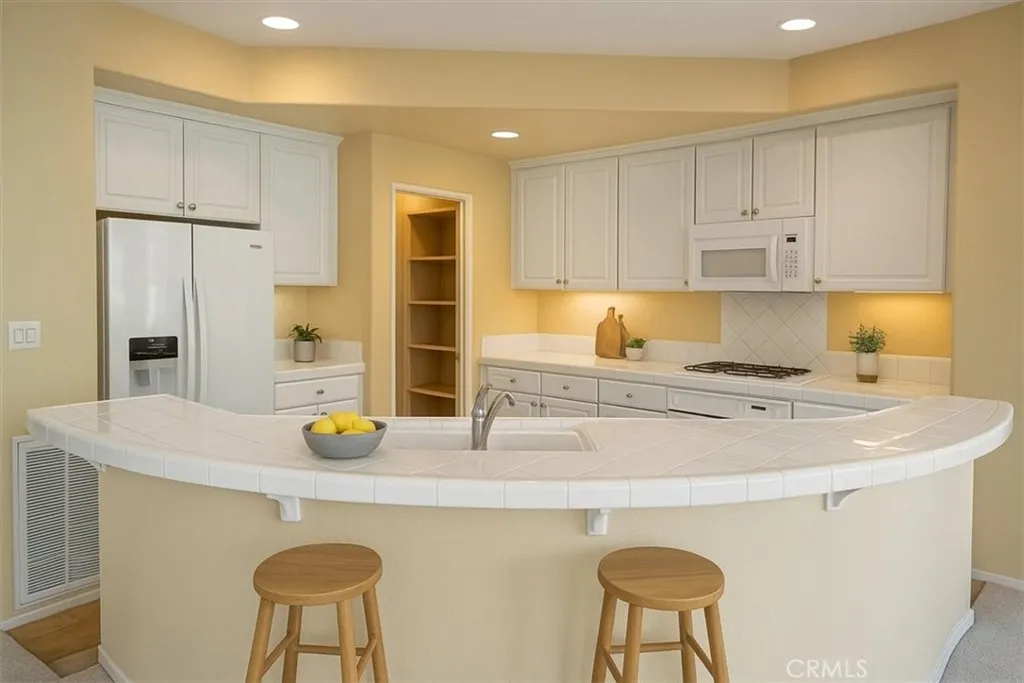 Valencia Cornerstone Town Home End Unit! No Mello Roos! 3 Bedroom + Loft area, with open floor plan! Warrantable and also eligible for FHA Spot Approval for low down payment financing. Call agent for details. Brand new carpet. Tile Flooring begins at Entry and continues throughout the first floor. Living Room has a cozy fireplace, and media niche. Dining Room with recessed lights has sliding glass doors to the patio and backyard. Kitchen with tile counters, cabinets with under cabinet lighting, gas cooktop, breakfast bar and walk-In pantry. Bedroom Two is located on the First Floor with a Full Guest Bathroom across the hall. Inside Laundry Room with storage cabinets. Upstairs Landing/Loft can be used so many ways. Primary Bedroom Suite with large walk-in closet. Primary Bathroom with dual sink vanity, walk-in shower, soaking tub and water closet. Bedroom Three with Full en-suite bathroom. Lushly landscaped backyard with wrap around patio. Attached two car garage. Newer A/C and FAU system. CORNERSTONE PERKS: Only 3 units per building; No Mello Roos; Lots of parking for guests, less density that most developments; 2 swimming pools, spas, BBQs, picnic area, playground,. Easy access to Santa Clarita paseo and trail system. Close to parks, shopping, restaurants and schools.