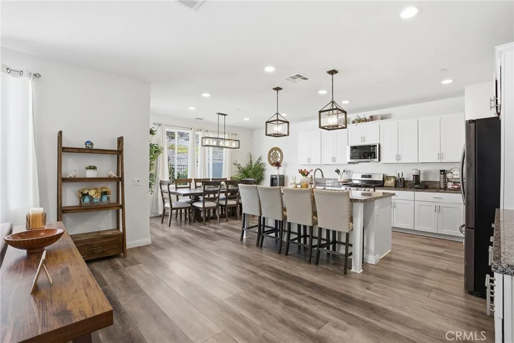 Welcome to this beautifully maintained 4-bedroom, 2.5-bathroom home in the highly desirable Skyline Ranch community of Santa Clarita. Offering a bright, open-concept layout and stylish modern finishes throughout, this home blends comfort, function, and everyday elegance. The main living area flows seamlessly into the spacious kitchen and dining space, creating the perfect setup for entertaining and daily living. The kitchen features a large center island with seating, abundant cabinetry, sleek countertops, stainless steel appliances, and contemporary lighting. Upstairs, the generous primary suite offers a peaceful retreat with a spa-inspired bathroom featuring dual sinks, a large walk-in shower, and a spacious walk-in closet. Additional bedrooms provide flexibility for family, guests, or a home office. Step outside to a beautifully designed low-maintenance backyard with artificial turf, patio space, and room to relax, dine, or entertain. The curb appeal is equally inviting with tasteful landscaping and a clean, modern exterior. Located in a sought-after community with access to exceptional amenities, residents enjoy The Lookout clubhouse, resort-style pools and spas, fitness centers, and extensive scenic trails. This is a wonderful opportunity to own a move-in-ready home in one of Santa Clarita's premier neighborhoods.