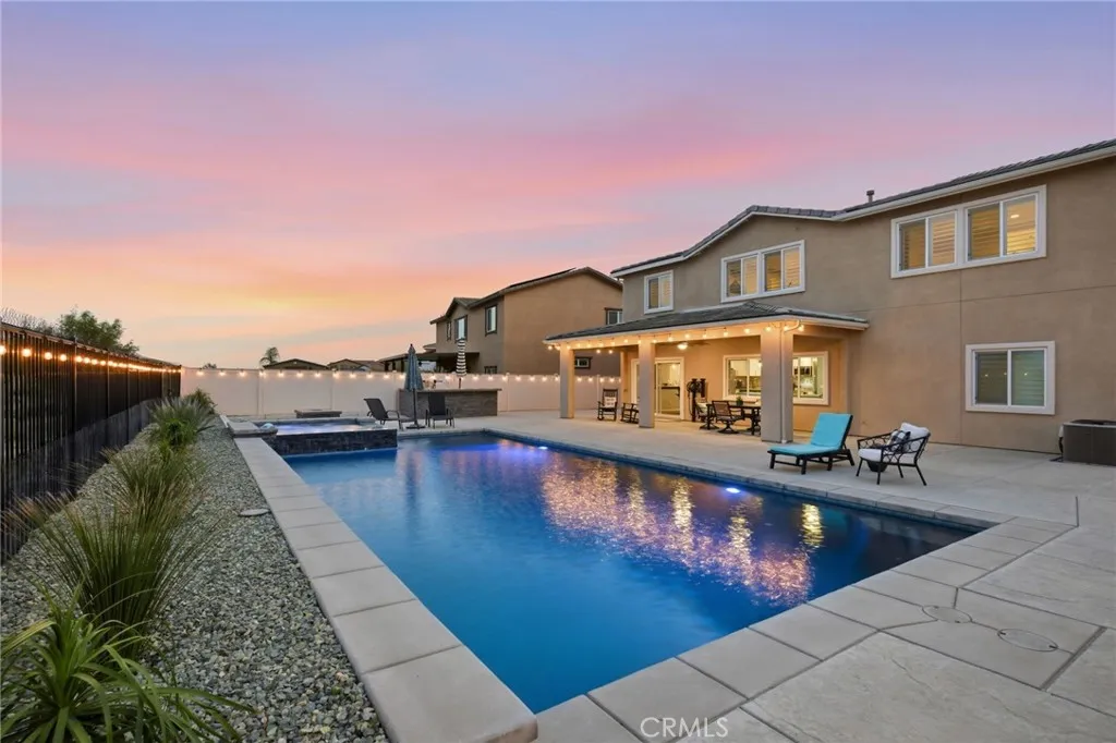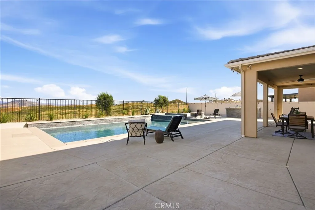 Welcome to your private retreatwhere luxury, comfort, and functionality come together in one exceptional home. Perfectly situated on a premium lot backing to a scenic nature preserve, this property offers rare privacy and breathtaking, unobstructed views with no rear neighbors and no HOA. Step into your own resort-style backyard featuring a custom-built saltwater pool and spa, complete with Pebble Tec finish, heated system, Baja shelf, 8.5-foot depth, and an impressive 33,000-gallon capacity. Enjoy multiple water features including a spillover jacuzzi and tranquil waterfalls, all powered by Pentair smart equipment with full mobile control. Designed for entertaining, the outdoor space boasts stamped concrete, drought tolerant landscaping, a covered patio with integrated lighting and fans, a gas fire pit, and a stunning stone BBQ island equipped with a refrigerator, sink, and premium Bull gas grill. Inside, the home is equally impressive with 9-foot ceilings, durable and stylish wood-look plank tile flooring, plantation shutters, and a spacious loftperfect for a second living area, office, or playroom. A standout feature is the oversized L-shaped walk-in closetoffering the kind of space rarely found, perfect for a full wardrobe, seasonal storage, or a custom dressing retreat. If youre looking for upgradesthis is the one. Every inch of this home reflects quality, with countless upgrades beyond what can be listed here. The home has been meticulously maintained and is truly move-in ready. Additional highlights include: Fully owned solar (25 panels) currently no electric bills