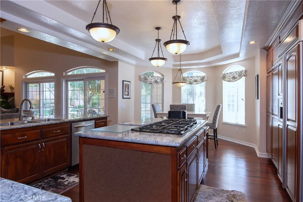 Stunning Custom Mediterranean Estate on 1 Acre Adjacent to the Alessandro Arroyo This exceptional residence lives like a single story, offering approximately 3,400 sq.ft. on the main level alone. A private courtyard entry with elegant double doors welcomes you into a grand foyer featuring soaring two-story ceilings. Just off the entry are a sophisticated library with custom built-ins and a versatile reception roomideal for entertaining or easily converted into a fifth bedroom. The traditional step-down living room and formal dining room with buffet niche/dry bar create an inviting setting for gatherings. The chefs kitchen boasts a center island, breakfast nook, and seamless flow into the expansive family room. The main floor also includes a luxurious primary suite complete with a sitting area, wet bar, and an walk-in closet, as well as a private guest suite with its own exterior entrance. Upstairs, youll find a spacious loft/sitting area, a large storage closet, and Jack-and-Jill bedrooms. Throughout the home, youll appreciate custom alder cabinetry, three main-floor fireplaces, a whole-house fan, dual A/C units, and walk-in closets in every bedroom. The outdoor spaces are equally impressive: a generous patio with ceiling fan, a covered outdoor room, retractable awning, a sparkling pool and a full outdoor kitchen equipped with grill, sink, refrigerator, and bar seating. Multiple seating areas overlook the natural terrain, complemented by a variety of fruit trees. Additional features include a finished three-car garage with built-in cabinetry and a separate storage room. Thi