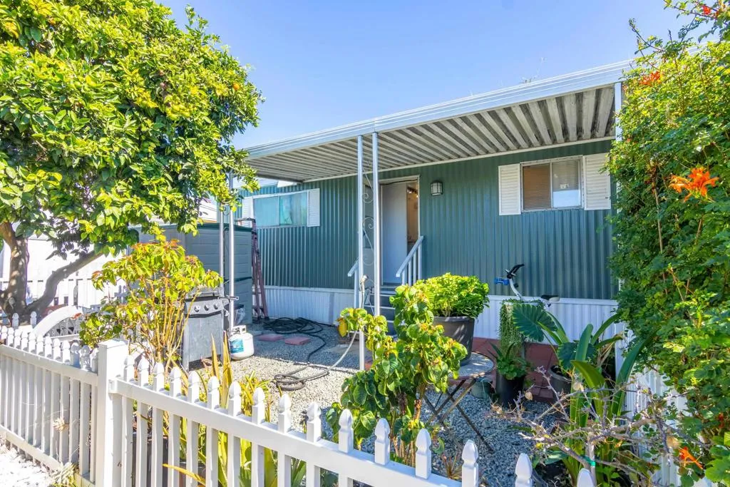 Cozy little home!! Perfect for those looking to down size or for an affordable home. Home recently painted inside and out. Great location. Well maintained park with many amenities. The exterior boasts a low maintenance yard with several fruit trees, private covered porch, and storage shed. Vista Royalodge is a 55+ park that allows second resident to be age 45+. 2 small pets okay with management approval. Monthly space rent is $1,021.25. Walking distance to Sprouts, Albertsons, Rite Aid, dining & shopping, near Downtown Vista; breweries, movie theater, transportation, Moonlight Amphitheater & a short drive to beaches! Call and schedule your private showing.