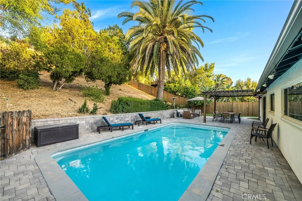 Centrally located in one of West Hills most desirable neighborhoods, this home offers a rare combination of convenience and WALKABILITY, with easy access to nearby parks, schools, dining, and everyday essentials, all set on a quiet residential street. The property features OWNED TESLA SOLAR (8.16 kW) producing over 17,400 kWh ANUALLY, and equipped with a BACK UP BATTERY!. The backyard is designed for both relaxation and entertaining, with a PAVER PATIO, WOOD PERGOLA- wired for sound and lighting, and a newly RESURFACED POOL with up to 10-foot depth suitable for a diving board. Synthetic TURF and mature fruit trees, including ORANGE AND GRAPEFRUIT, complete the outdoor space. Inside, the home has been updated top to bottom with ENGINEERED HARDWOOD FLOORING custom shaker cabinets with soft-close hinges, QUARTZ countertops, and a large kitchen island. The kitchen is equipped with new Samsung appliances and a stainless steel sink. Additional features include a wood-burning fireplace, DUAL-PANE windows, a new ABS SEWER LINE, and generously sized bedrooms. The primary suite offers dual sinks, a large WALK-IN SHOWER with a RAIN SHOWERHEAD, and dual closets. 7112 Darnoch is a short walk to Mae Boyar Park and Pomelo Community Charter School, with nearby access to local dining and cafs. Daily conveniences are minutes away at Pavilions, and major shopping destinations like Westfield Topanga and Fallbrook Center. Come see this well-located, move-in ready home with strong indoor-outdoor living and energy efficiency in a prime West Hills setting.