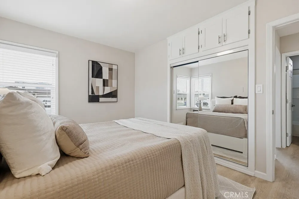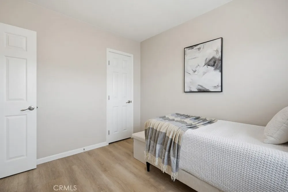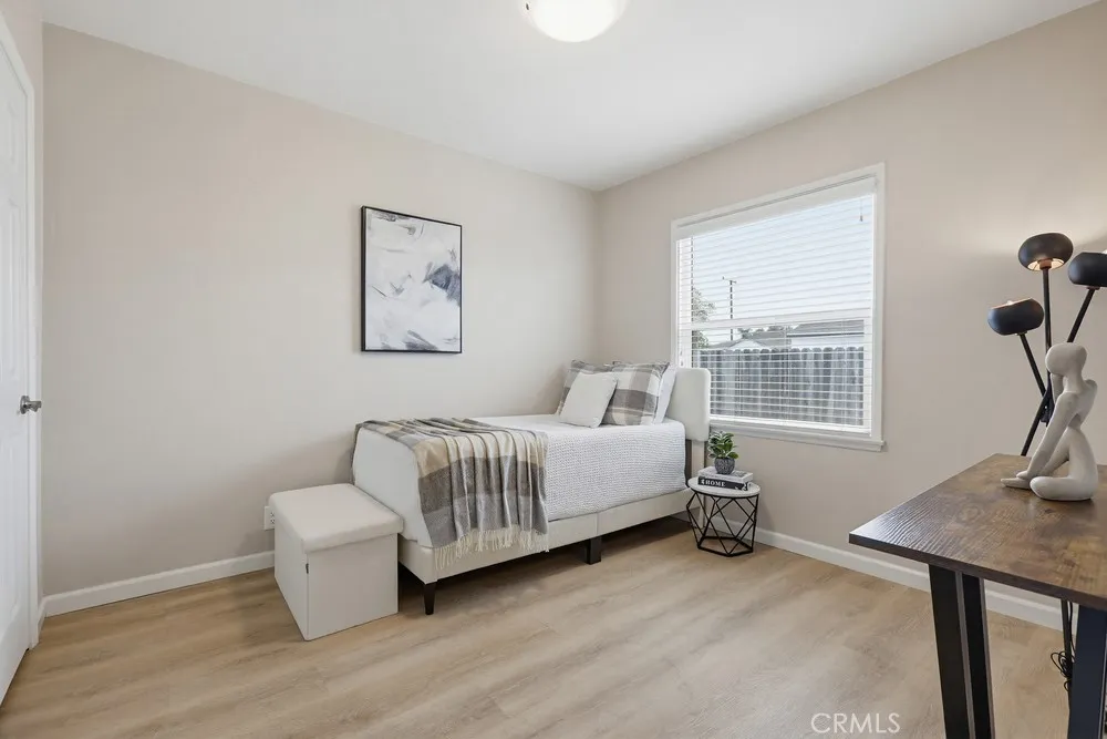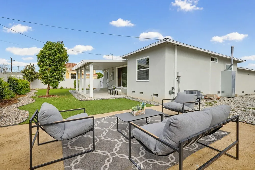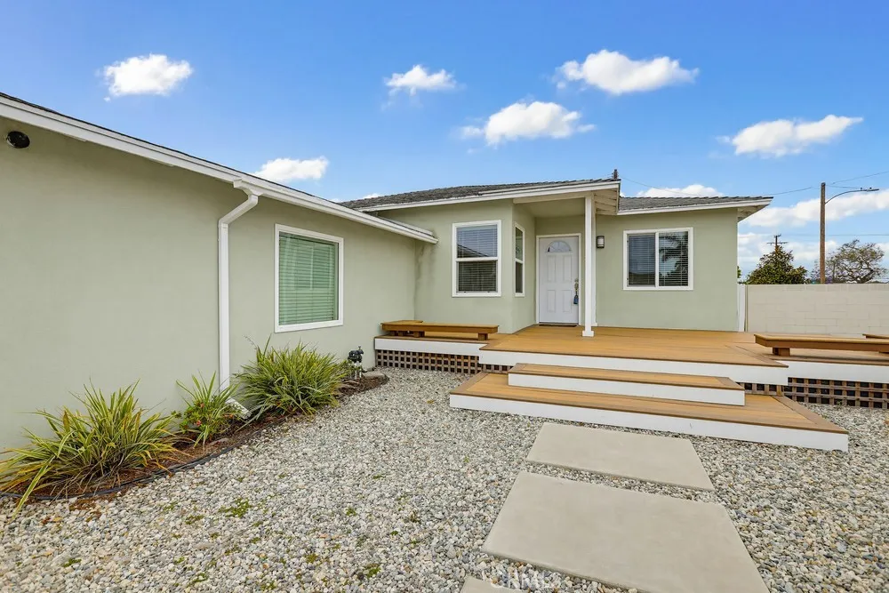 Mid-century Modern 3 bedroom with GREAT ADU & JADU POTENTIAL! Or 2 duplexes with SB 9! Oversized 7,526 square foot flat lot on a cul-de-sac AND street to alley AND corner lot and RV/boat parking. This maximizes options for ADU/JADU/SB 9 lot split. Beautiful updated home with large fenced backyard AND huge front yard and side yard ON A QUIET CUL-DE-SAC! Great home in wonderful location to move in immediately, plus add tons of value and living space with the expedited ADU/JADU/SB9 60-day plan approval! Friendly modern wrap-around entertainment deck. Immaculate backyard with pristine evergreen lawn and covered relaxation patio. Room for many fruit trees! Updated eat-in kitchen with Shaker cabinets, quartz counters and deep basin sink. The kitchen comes fully equipped with a premium stove, oven, microwave, and refrigerator. A washer and dryer are also included. The updated bathroom features modern finishes that complement the home's refreshed feel throughout. The property features an attached 2-car garage, offering convenient parking and additional storage space.