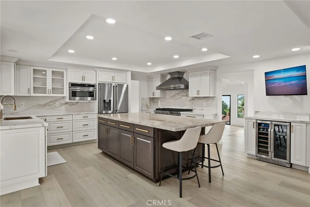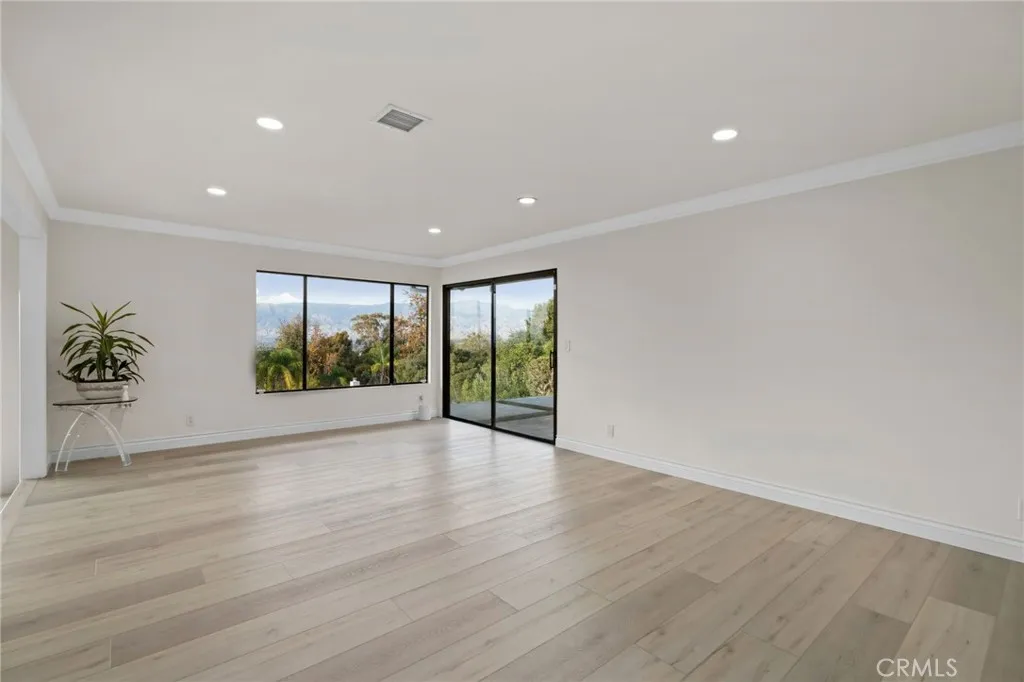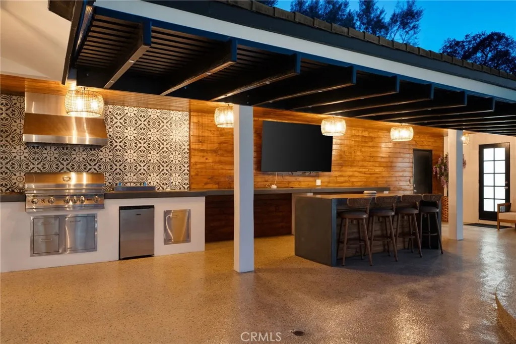 Tucked along in one of the most desirable areas of Smiley Heights in South Redlands. Prestigious tree-lined neighborhood with terrific curb appeal. This hilltop corner home is a rare masterpiece, offering stunning views. This Beautiful Contemporary Residence has charm and elegance. Recently renovated from top-to-bottom. Arrive in style on stunningly crafted, brand-new paver driveway that perfectly frames the home's exterior of the home along with new lighting and smooth finished walls throughout the exterior/interior of home creating a clean tranquil canvas. Enter into a private gated courtyard, you are greeted by a shimmering, centrally located sparkling new pebble finish pool. This isn't just a home-it's a private sanctuary with an Indoor/Outdoor flow. The open-concept floor plan utilizes sliding glass doors allowing the living, and kitchen areas to blend in effortlessly with central pool. Along side with completely renovated barbeque area, with lattice cover patio, concrete counter top with polish finish, smooth stucco finish with BBQ grill 42", with 2 side burners, sink, new exhaust fan for BBQ, new recess lighting and spot lighting. Step through the double-door entry into an airy, light-filled foyer, natural light atmospheres and panoramic, scenic views. Greeted by high ceilings and a sweeping open floor plan designed for both comfort and entertainment. This fully renovated, move-in-ready home boast a modern, top-to-bottom transformation, featuring a stunning new chef's kitchen featuring quartzite countertops, all new cabinetry, huge island ideal setting for those fami