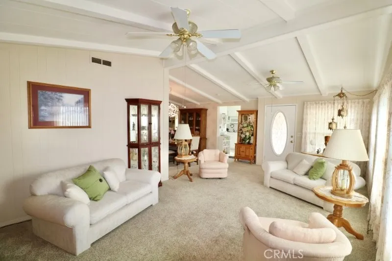 Senior Park Community 55+..Look no further! This charming large 2br., 2ba is nestled on the lush greenbelt with a nice covered patio perfect for enjoying morning coffee or your favorite beverage. The entry welcomes you into the spacious living room featuring plenty of windows allowing for natural light, and adjacent to the dining room. Nice size kitchen with lots of counter and cabinet space including pull out drawers, gas cook top and breakfast nook. Just off the kitchen is the Den featuring a fire place and beverage bar perfect for entertaining family and friends. The master bedroom features a walk-in closet, attached bath with double sinks, soaking tub, walk in shower and linen space. The guest bedroom is just generously sized with a wardrobe closet and attached second full bath with walk in shower. Separate laundry room offers a sink and desk space. Extras include; covered side by side parking area for 2 cars. Updated windows throughout. Vaulted ceilings. Newer washer and dryer included. Beautifully landscaped. Dont miss out on this beautiful home.