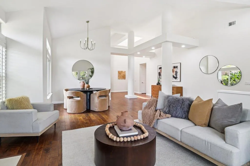 Seller will entertain offers between $1,299,888 to $1,349,888. Welcome to this exceptional and rarely available home in the highly sought-after Oakstone community in Escondido. Nestled on a quiet cul-de-sac within an intimate neighborhood of just 32 homes, this property offers the perfect blend of privacy, safety, and luxury living. This stunning single story residence with an upstairs loft/office features soaring ceilings throughout, creating an expansive and airy atmosphere from the moment you step inside. Impeccably maintained, the home showcases designer fixtures, hardwood flooring, beautiful quartz counters and an immaculate landscaping that rivals a resort, delivering true curb appeal and a serene outdoor environment. The backyard is a private oasis designed for both relaxation and entertaining, complete with a pebble pool, cascading waterfall, fire pit, built-in bar/BBQ, pavers, and exotic plants with lush surroundings. The previous owner invested hundreds of thousands of dollars to create this one-of-a-kind outdoor retreat. Inside, youll find a spacious primary suite with 10+foot ceilings, complemented by a luxurious bathroom and walk-in closet that rival those of a five-star hotel. The expansive open-concept kitchen is an entertainers dream, offering ample space for gatherings and seamless flow into the main living areas. The entire house runs on solar so no need to worry about rising energy prices! Step outside to enjoy the covered built-in BBQ and bar areaperfect for year-round entertaining and making the most of Southern California living. Homes of this caliber