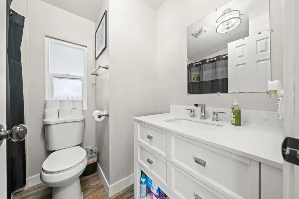 Well-maintained home with beautiful views of the Sweetwater Reservoir! This home features updated flooring throughout and an upgraded bathroom, offering a fresh and modern feel. The kitchen includes stainless steel appliances and opens to a comfortable living area. Enjoy central AC and a private deck in the backyard, perfect for relaxing or entertaining. The seller has also added fencing in the front to enhance privacy and curb appeal. Located in a well-maintained all-age community with amenities including a pool and clubhouse. Conveniently situated near freeways, shopping, and dining, while still offering a quiet location within the park.