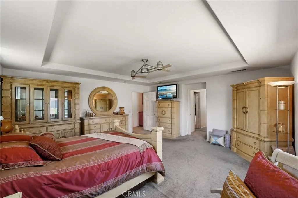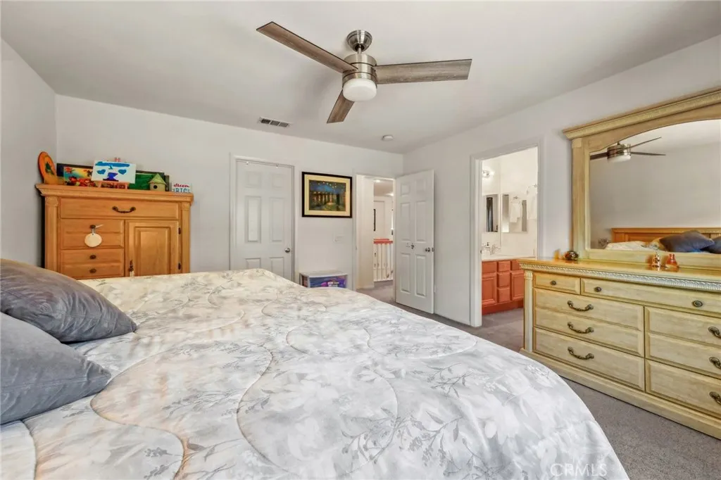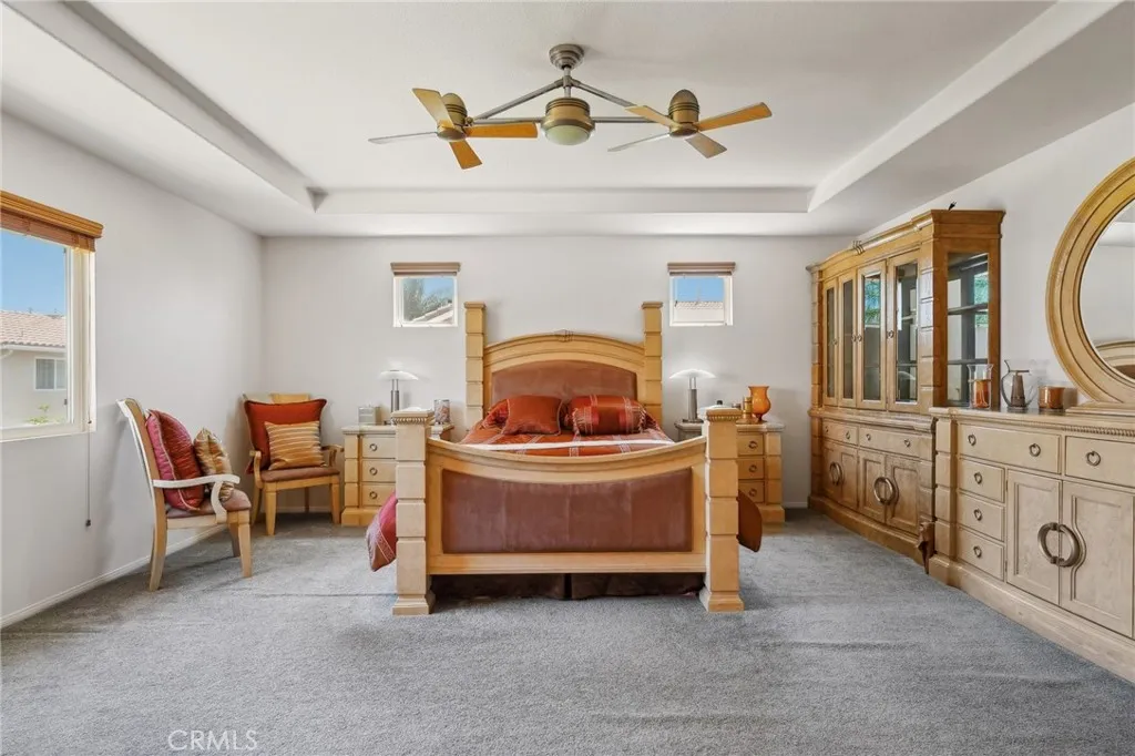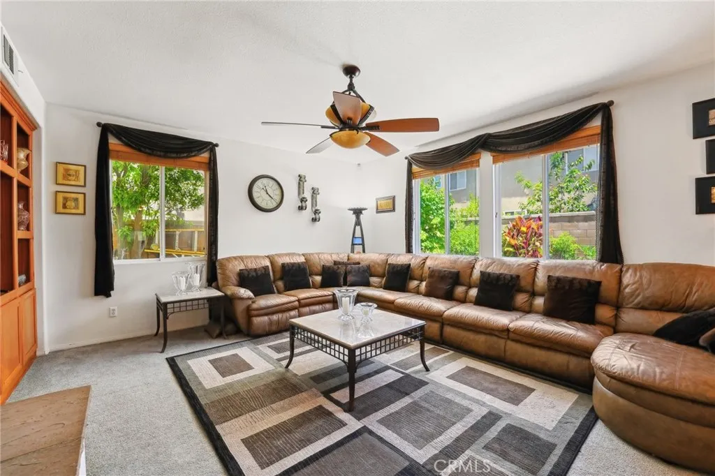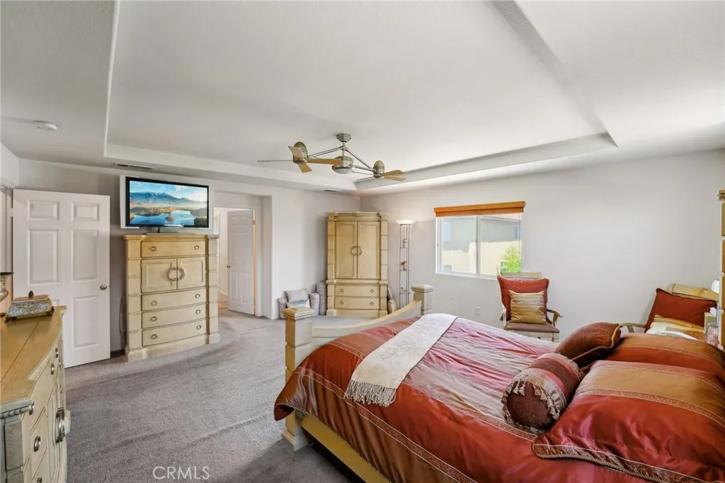Discover unparalleled warmth and traditional sophistication in Eastvale! This meticulously designed and impeccably maintained residence offers the perfect blend of traditional elegance and comfortable living. Boasting 6 bedrooms and 4.5 bathrooms, this home is a true gem in the heart of a vibrant and growing neighborhood. Step inside to discover a bedroom with a full bath on the right-hand side. it is convenience for parents and accommodating guests. Then it guides you to the living room with approximately 10 feet high ceiling. There is a double French door leading to the side yard. it is also guided to the formal dining room. The modern kitchen is a chef's delight, featuring island, built-in stainless-steel appliances, granite countertops, walk-in pantry and ample cabinet space for storage. It is open to the breakfast area and family room. A fireplace is in the family room which is making it cozy and warmth. There is a laundry room and another half bath on the first floor as well. The other 5 bedrooms and 3 full bathrooms are on the upper level. The master suite is a true retreat, featuring two separated his-and-her walk-in closet, ensuite bathroom with double vanities, and a jacuzzi tub. The additional 4 bedrooms are generously sized and appointed with two well-full bathrooms. All bedrooms have ceiling fans. The backyard offers ample space for relaxation and entertainment, with a covered patio, lush landscaping, and commercial grade BBQ area. This home offers newer water heater and leased solar which can save your electric bill. The garage is tandem that can be parked in