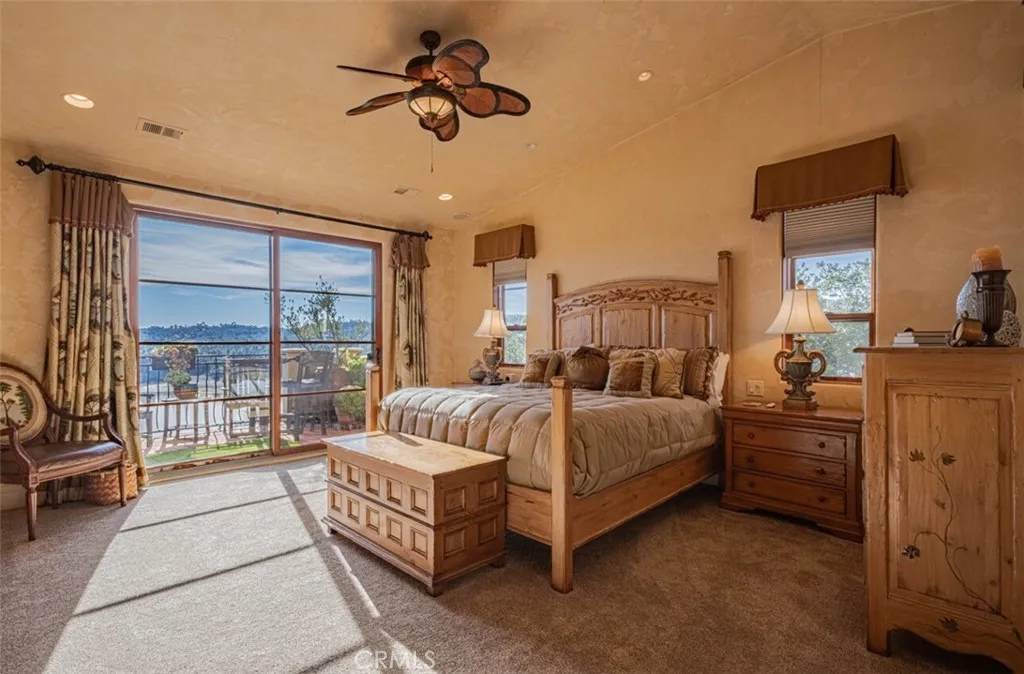 Welcome to 8730 Bluff Ct in Oak Shores at Lake Nacimientowhere lakefront living is front and center! Set above the water with wide-open views, this custom-built 5BD/5.5BA home offers approx. 4,502 sq. ft. designed for either relaxed weekends or full-house gatherings. The main level sets the tone with exposed beams, rich woodwork, and a spacious kitchen that opens to the living and dining areas. The primary suite is also on this level, creating a comfortable, easy everyday layout. Step outside and youre immediately pulled toward the viewsexpansive decks and balconies made for morning coffee, sunset dinners, and long summer nights with friends. Downstairs, the home opens up even more. The terrace level features multiple bedrooms, including three with en-suite baths, along with a massive recreation room (approx. 34 x 30) ready for game tables, movie nights, or overflow guests. The lower level offers additional bedrooms, a wine cellar, a large sitting area, and additional storageideal for longer stays or hosting extended family. An oversized 3-car garage (over 1,000 sq. ft.) leaves room for boats, gear, and everything that comes with the lake lifestyle. With over 1,700 sq. ft. of balcony space an d a thoughtful multi-level layout , this is a home built to be enjoyedwhether its a quiet weekday escape or a full house on the weekend!