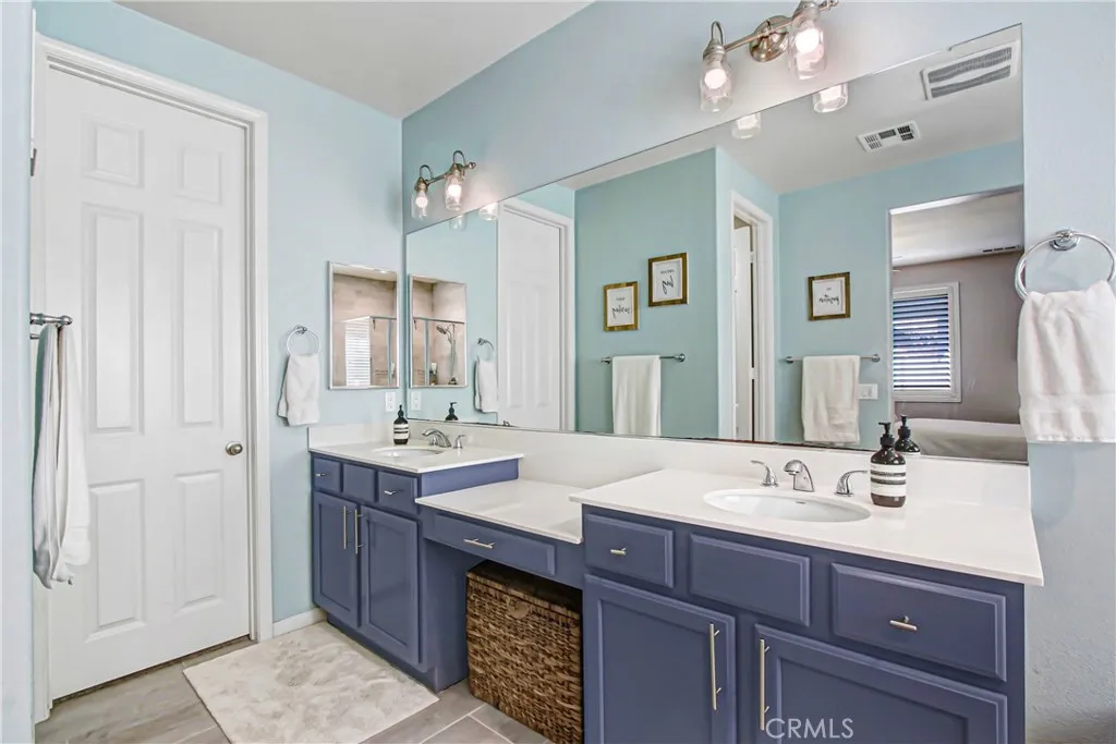 Welcome to this beautifully upgraded 4-bedroom, 3.5-bathroom home located in the highly desirable community of Murrieta. This spacious residence also features a private office with doors, easily convertible into a 5th bedroomperfect for guests. Step inside to find elegant plantation shutters throughout and durable luxury vinyl plank (LVP) flooring in the main living areas, with plush carpeting in the bedrooms for added comfort. The heart of the home is the expansive, chef-inspired kitchen, complete with Corian countertops, an impressive 15-foot center island, custom cabinetry, soft-closing drawers, built-in trash bin, and a large walk-in pantry. Additional highlights include a single oven and a convenient double sink with touch featureideal for both everyday living and entertaining. The backyard is designed for relaxation and gatherings, featuring a covered patio with ceiling fans and shades, a gas line for outdoor cooking, low-maintenance vinyl fencing, and newly installed sod. The front yard offers attractive and water-efficient artificial turf. Additional upgrades include: 2-car garage with epoxy flooring, Tankless water heater, Tesla charging station, Water softener system, Paid-off solar system for energy efficiency and savings This home truly combines comfort, style, and sustainabilitydont miss the opportunity to make it yours!