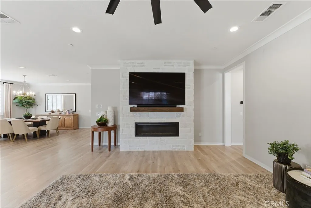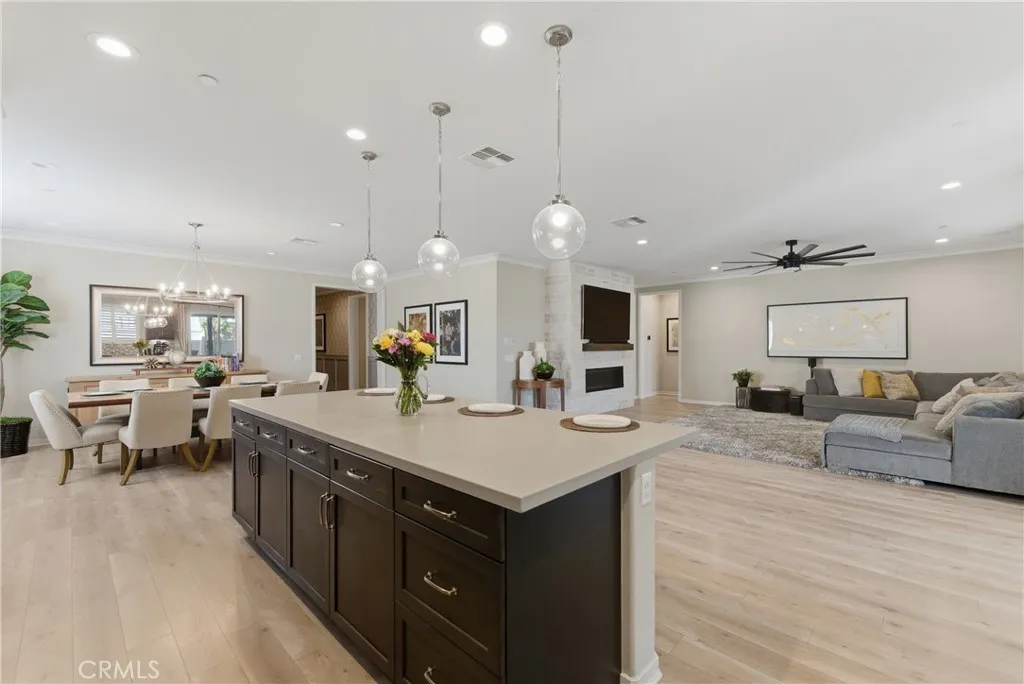 Welcome to the former MODEL HOMEwhere luxury, design, and upgrades are taken to the next level. Located in the highly sought-after Province community of Heritage Ranch, this stunning single-story Piedmont model is the one everyone walked through and fell in love withand now it can be yours. Spanning approximately 2,293 sq ft, this beautifully curated home offers 3 spacious bedrooms and 2.5 baths, loaded with premium finishes and designer touches throughout. Situated on a quiet cul-de-sac, the wide driveway and pristine 3-car garage set the tone before you even step inside. From the moment you enter, youre greeted by a grand, open hallway leading past two generously sized bedrooms and a full bathperfect for guests or familyalong with a spacious laundry room designed for both function and convenience. Step into the heart of the home and youll immediately feel the differencethis is where the model home truly shines. The open-concept layout seamlessly connects the family room and chefs kitchen, showcasing high-end upgrades, an expansive layout, and the kind of space that was built to impress. The primary suite is a private retreat, offering comfort, elegance, and a large walk-in closet designed to fit your lifestyle. Out back, enjoy a fully finished backyard oasis complete with custom landscaping, artificial turf, sleek concrete, and a built-in BBQ islandperfect for entertaining or unwinding in style. And the 3-car garage? Fully finished with epoxy floors and upgraded wallsclean, polished, and ready for anything. This isnt just a homeits the one they chose to showcase. Now its