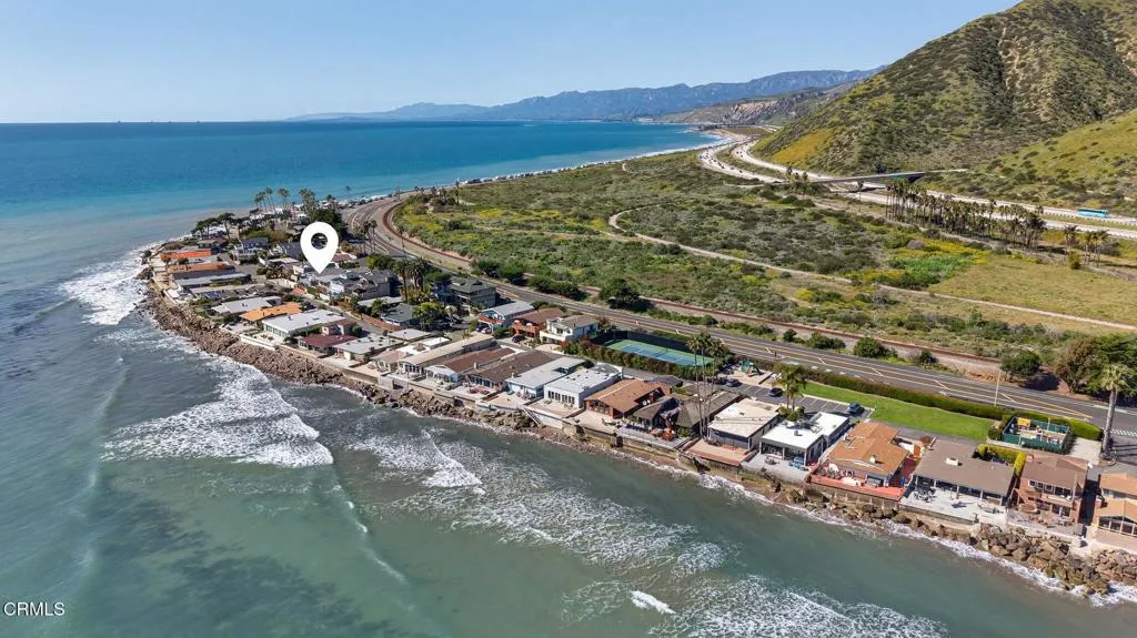 An exceptional opportunity to own a recently upgraded modern beach home within the private gated community of Faria Beach Colony, one of the Ventura coastline's beautiful beachfront communities. This 'one-back' 4 bedroom turn-key beach house offers 2,088 square feet of thoughtfully designed living space with sweeping 180 degree ocean, island and surf views all from the comfort of your living room, kitchen and patio. The upper level is defined by vaulted ceilings and an open-concept living and dining area that flows seamlessly to a generous view deck positioned for sunset evenings above the Pacific. A custom kitchen with soapstone counters complements the home's clean coastal aesthetic. Additionally on the upper level is the private primary suite which includes a walk-in closet and en suite bath, as well as an upper floor guest room and 1/2 bath. While 2 additional bedrooms, a full bathroom and a secondary living area below provide flexibility for guests or extended stays. Lush landscaping and intimate outdoor spaces enhance the sense of privacy. An outdoor shower and rare three-car garage, complete with bonus surfboard shaping room. In addition, the home features two private parking spaces in front and two additional spaces in the rear, providing abundant private parking for family and guests. Residents enjoy gated beach access located just steps from the house. Located just north of downtown Ventura and conveniently located between Santa Barbara and Malibu.